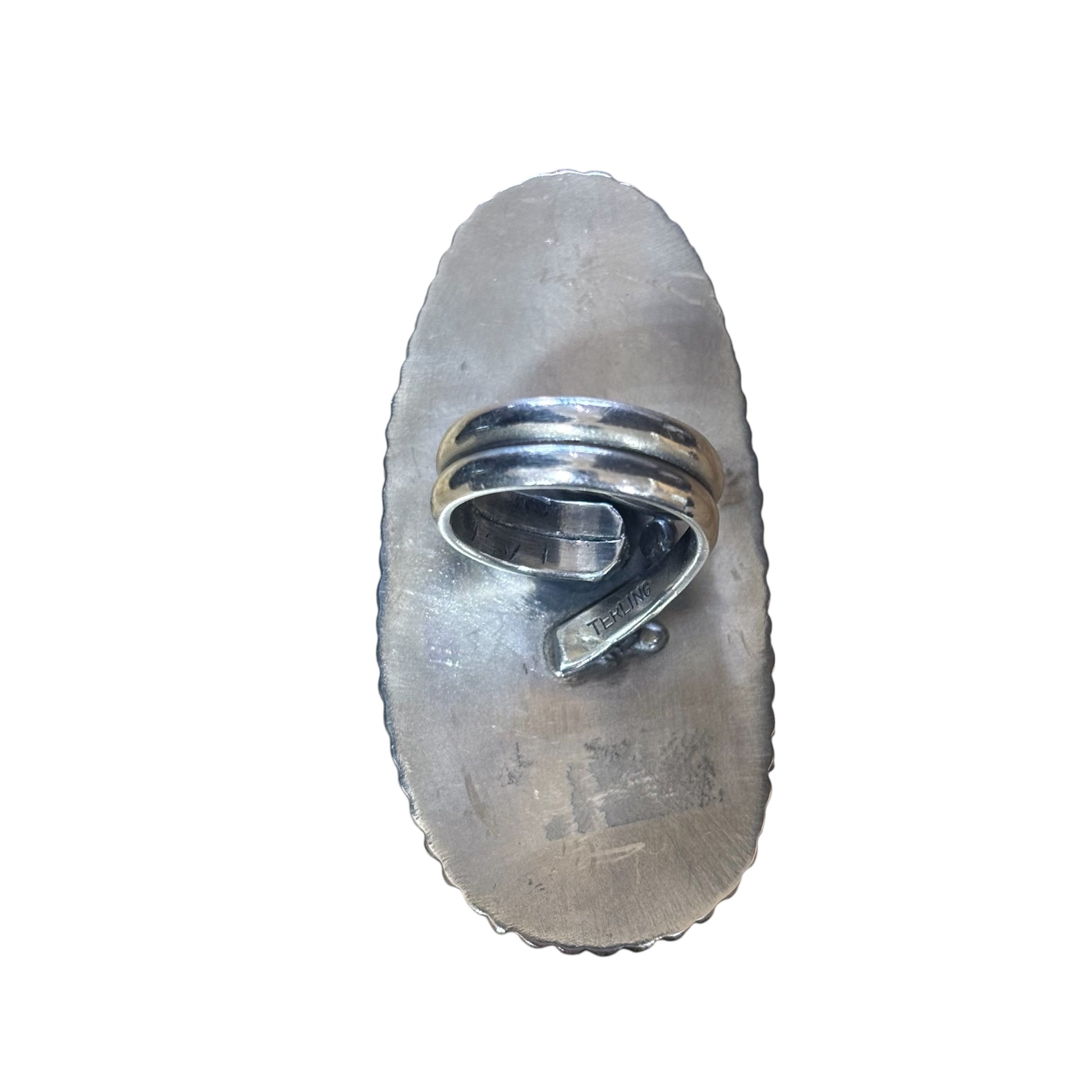 This breathtaking one-of-a-kind statement ring showcases a large oval Boulder Opal, bursting with electric shades of Lavender, earthy golds, and chocolate brown matrix patterns that dance together like a desert storm over sandstone. The natural color play and intricate matrix make each angle shimmer uniquely in the light.