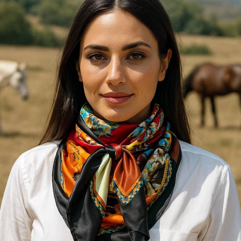 35X35" Black and Red Floral Paisley Wild Rag / Scarf WR1025