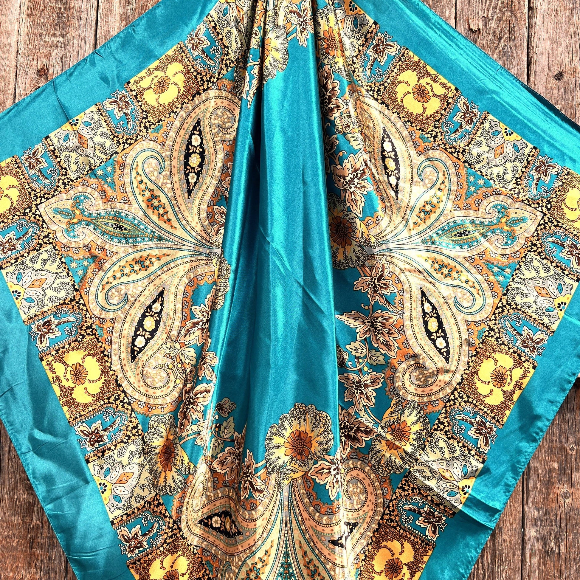 35X35" Teal Tone Paisley Wild Rag / Scarf WR1000