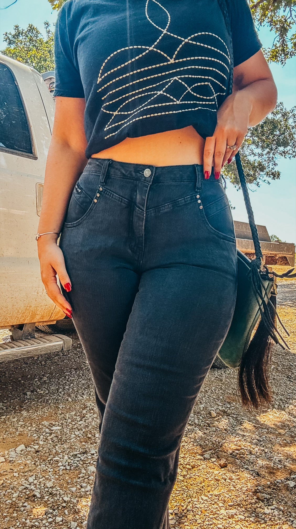 The Bandita Black Tapered High Rise Bootcut 90's Vintage Jeans Regular & Plus Sizes (Tummy Control)