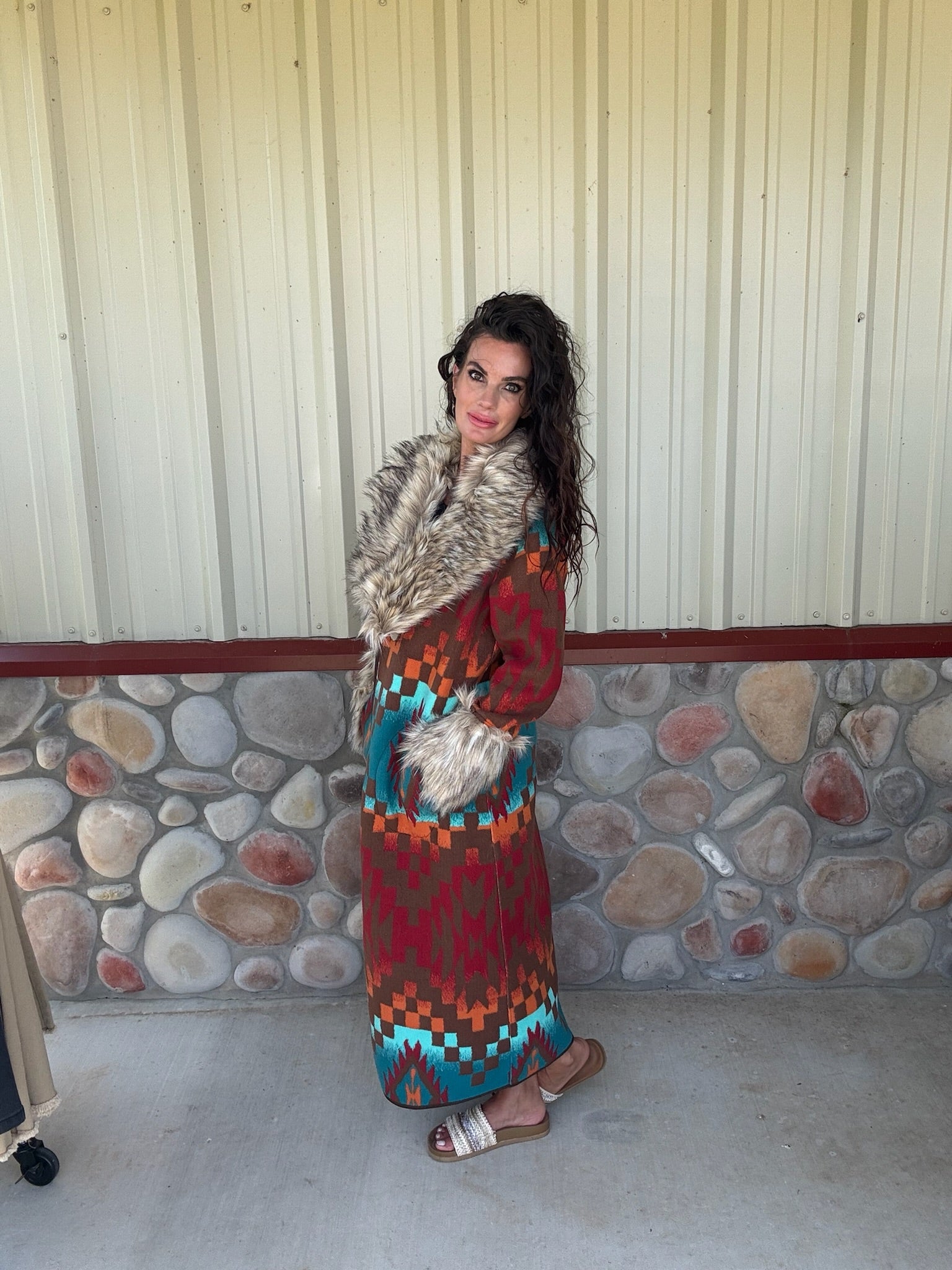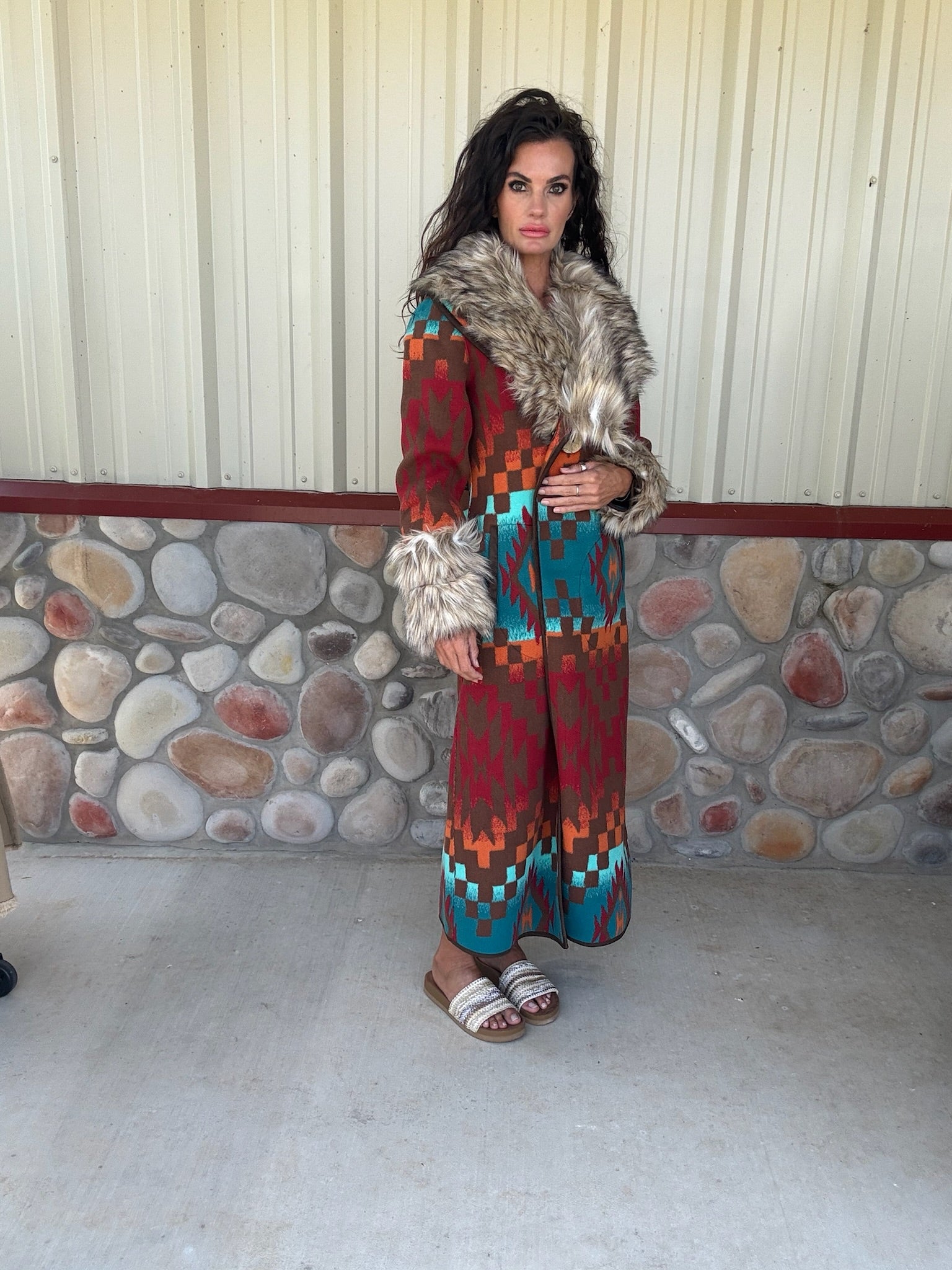 Channel timeless Western luxury in the stunning Casey Coat by Tasha Polizzi. Crafted from a rich blend of faux fur, polyester, and acrylic, this statement piece brings cozy sophistication with every wear. From chilly ranch mornings to city nights out, the Casey Coat layers effortlessly over denim, dresses, or leather, adding a bold touch of texture and elegance.