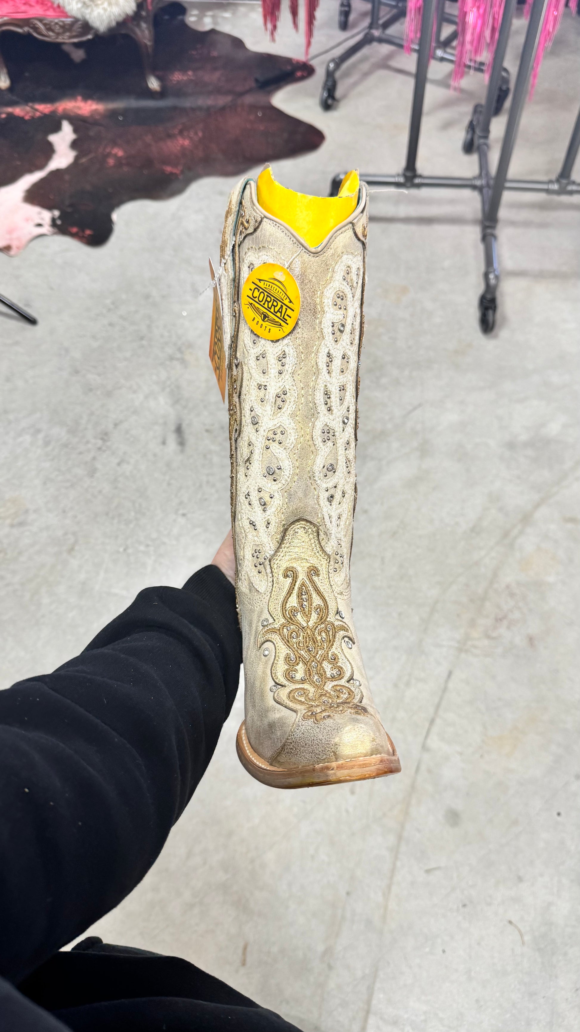 Corral Golden Bling Women's Overlay Embroidery Studs & Crystals Western Boots