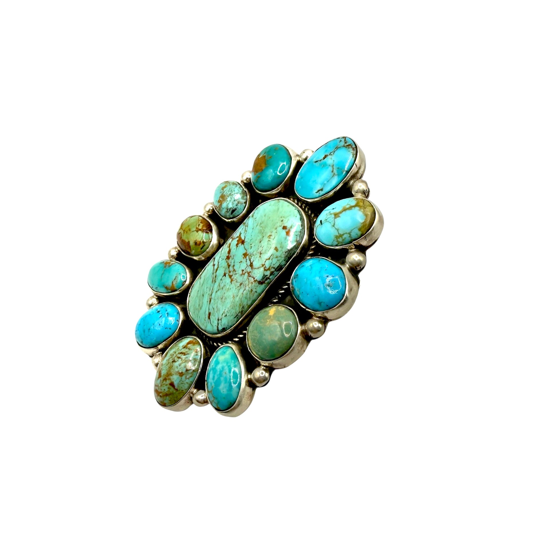 Kingman Cluster Ring Adjustable by Gerildine James, Navajo