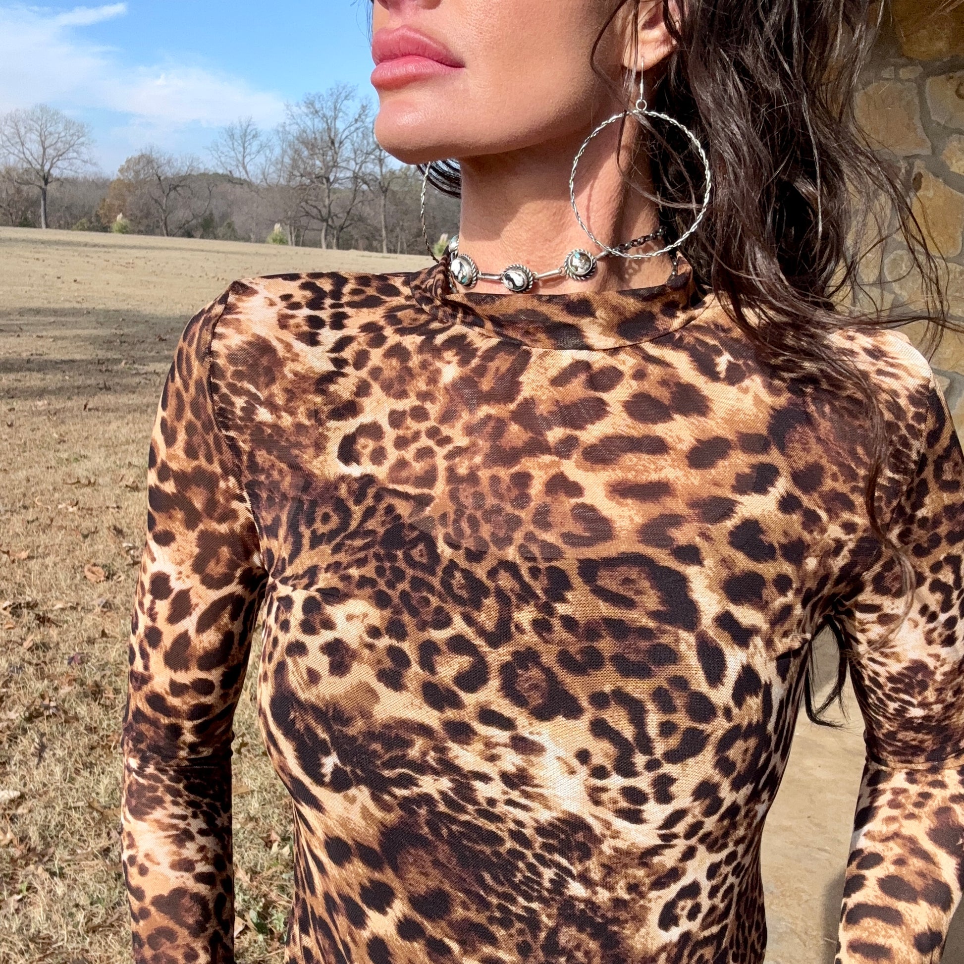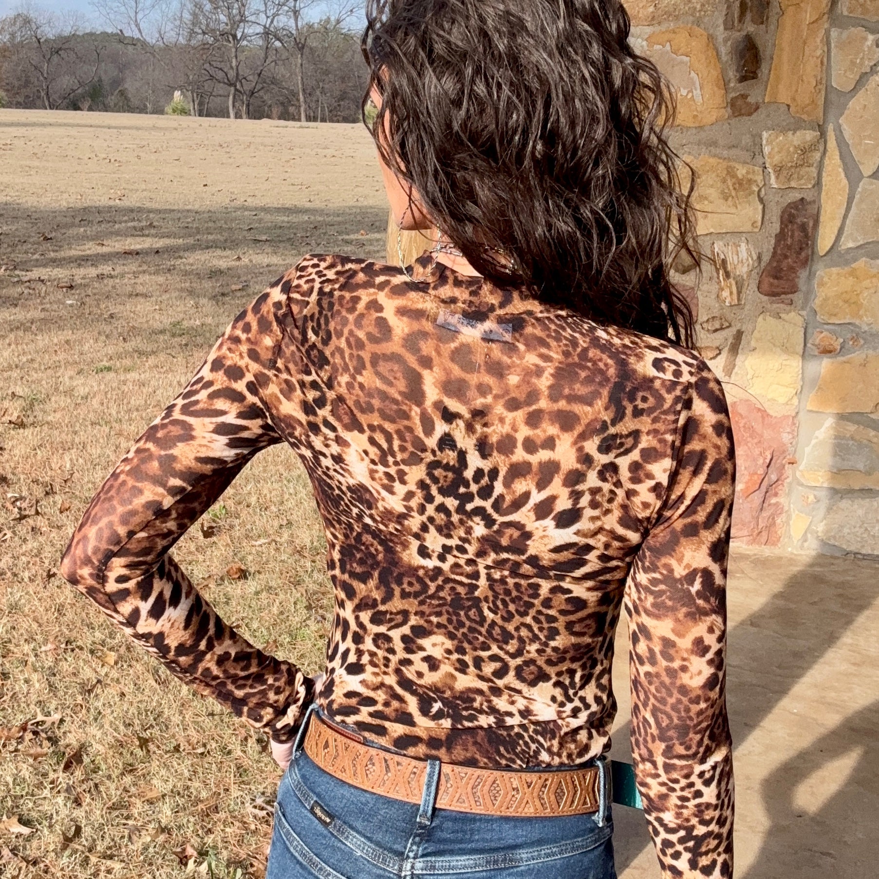 Turn heads in our Let's Go Girls Mesh Top, featuring a fierce leopard print that brings out your bold western edge. This long-sleeve mesh design is lightweight, stretchy, and perfect for layering under vests, blazers, or your favorite graphic tee. Whether you’re headed to a concert, rodeo night, or a night out in town, this top adds the perfect punch of wild western flair.