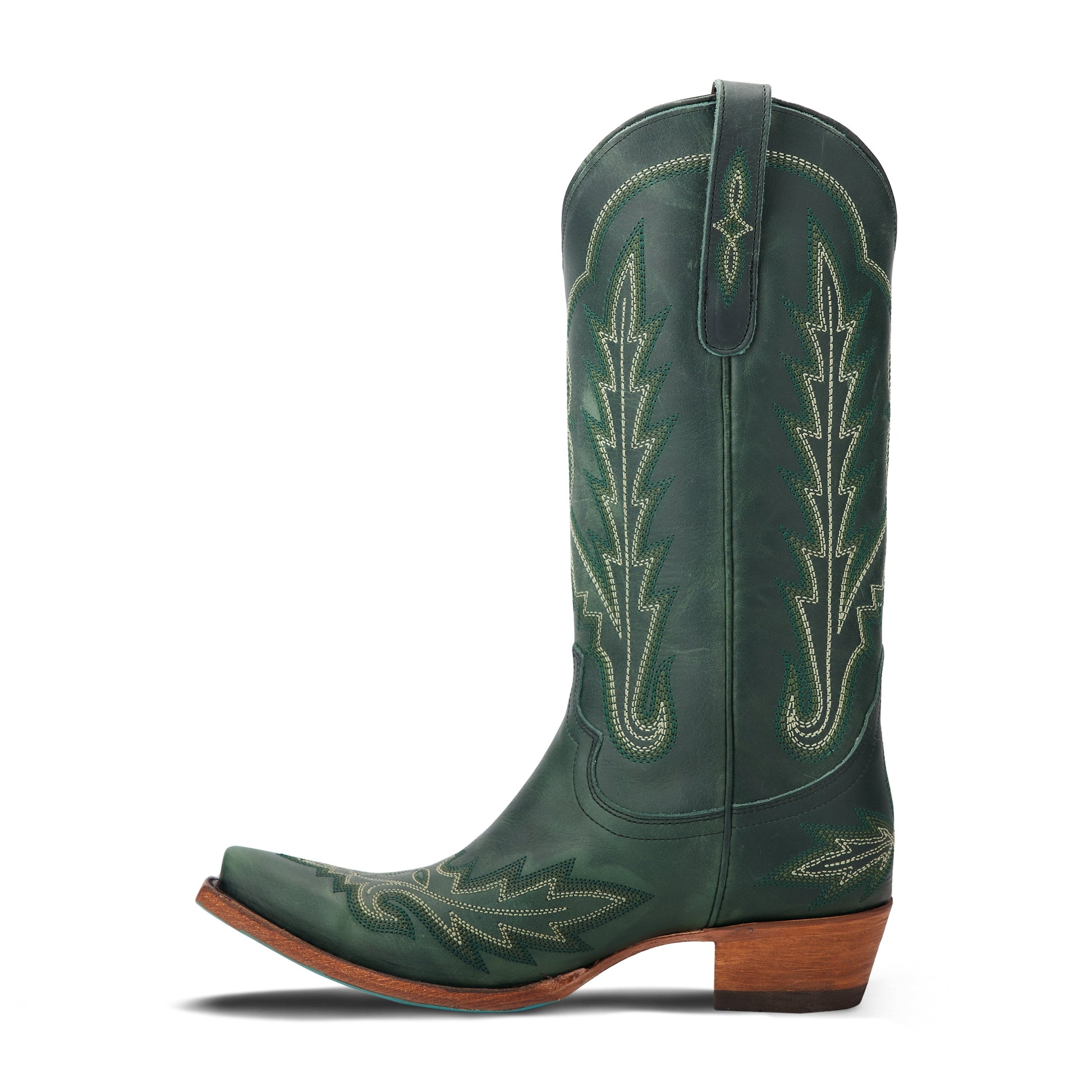 Heirloom quality boots with a core western influence. The classic snip toe profile is embroidered to perfection with a twist on traditional flame stitch.