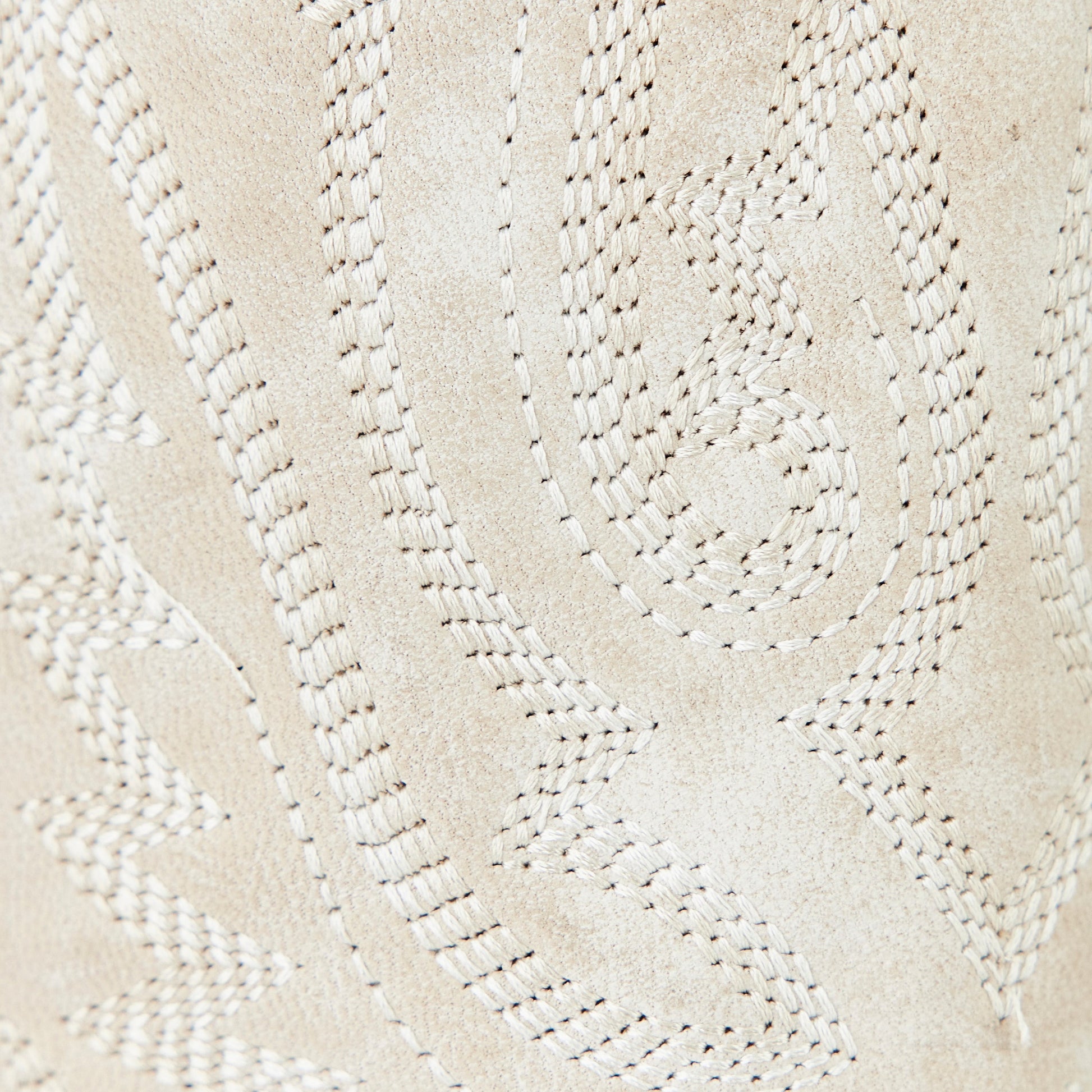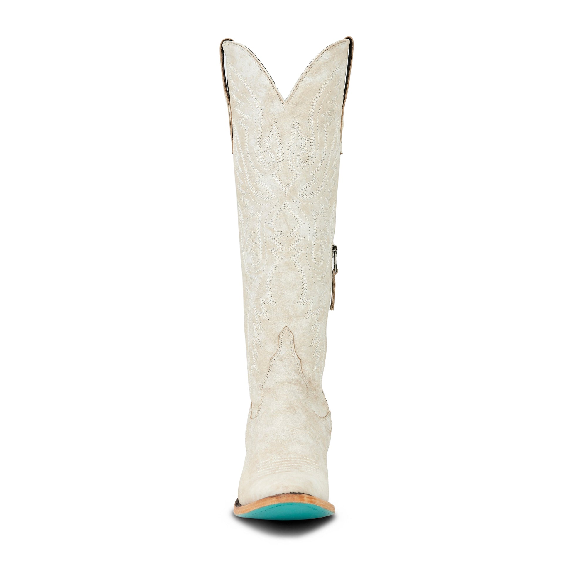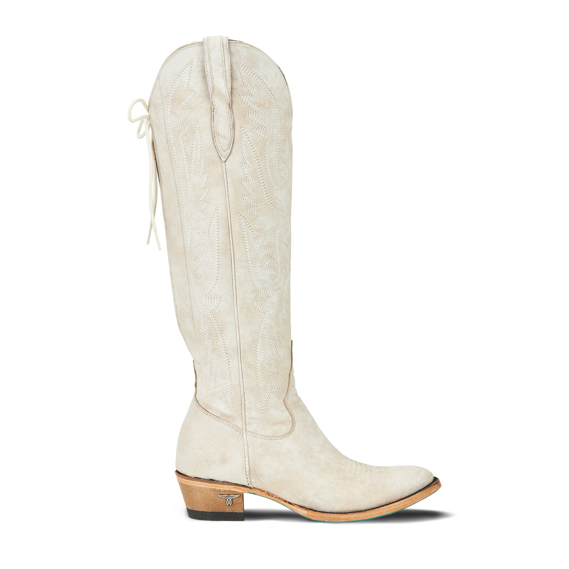 Heirloom quality with a core western influence. The classic snip toe profile is embroidered to perfection with a twist on traditional flame stitch and a functional corset back.