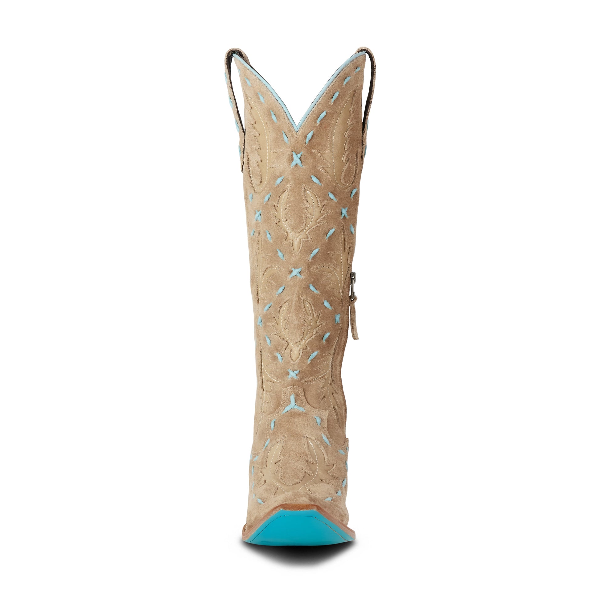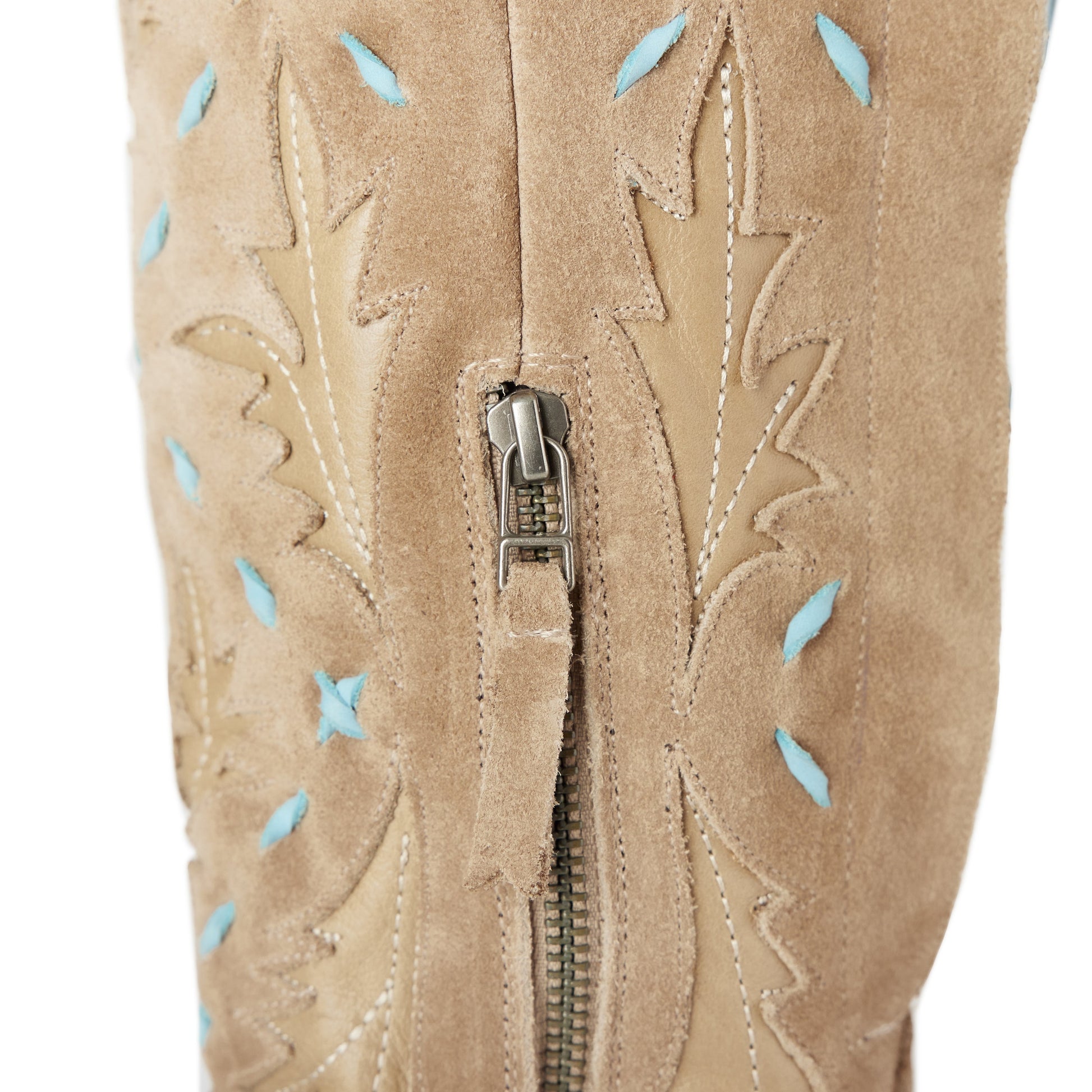 This collaboration features the signature latte suede and powder blue accents you’ve come to love from West Desperado. The Reverie features a functional corset with wide tongue to accommodate all sexy leg types. Customize the corset to your leg one time and the easy in, easy out zipper will take care of the rest.