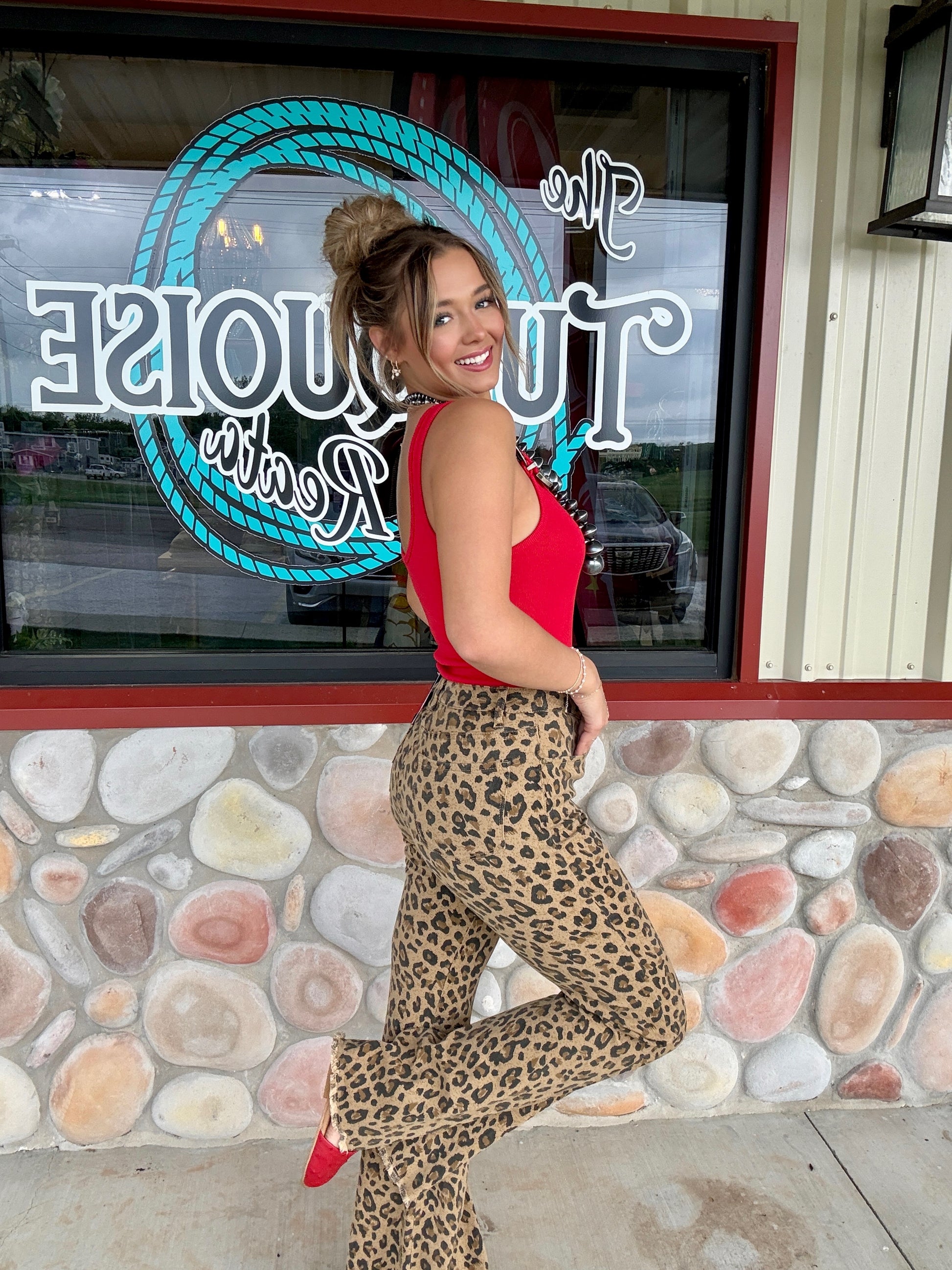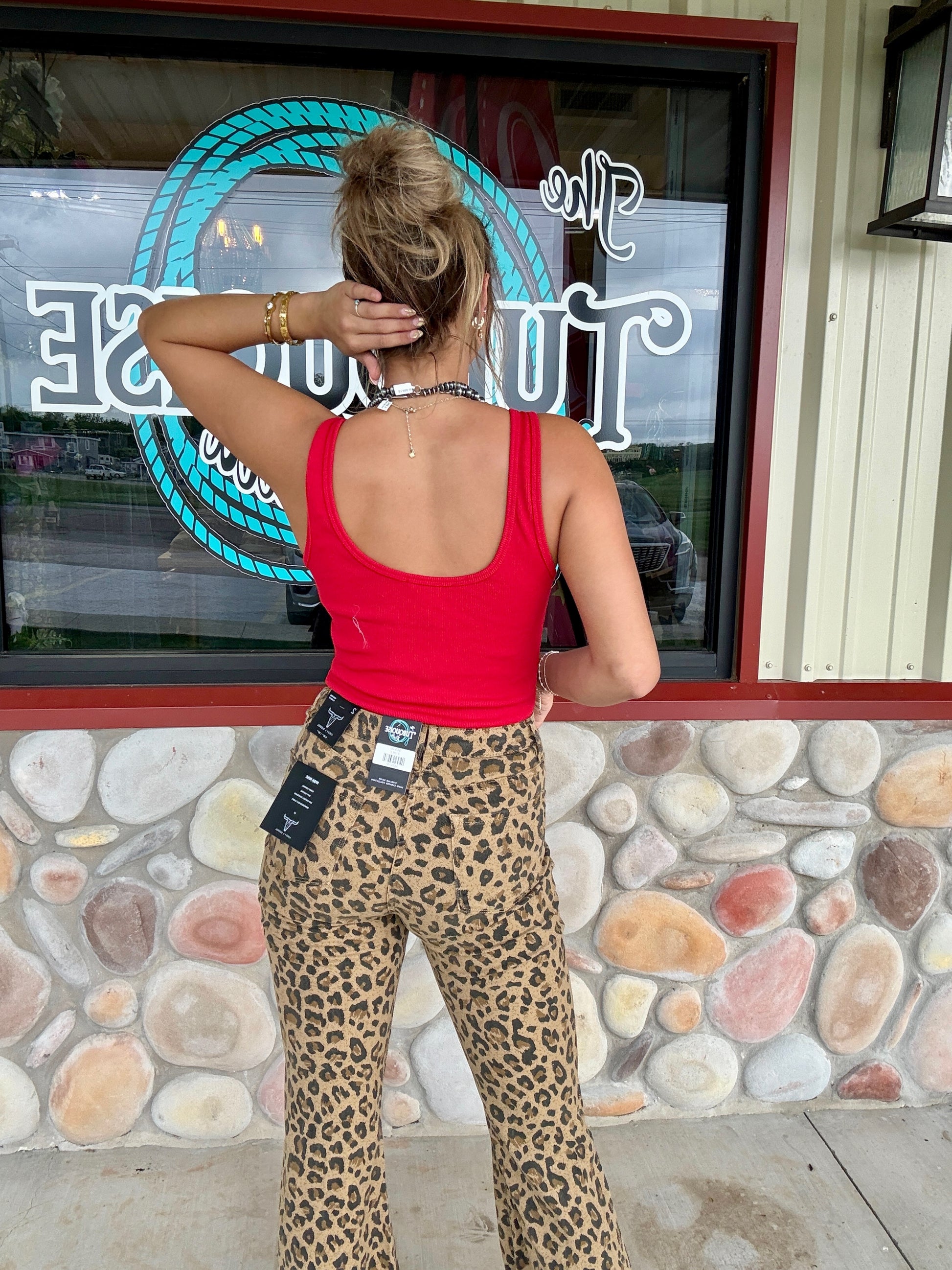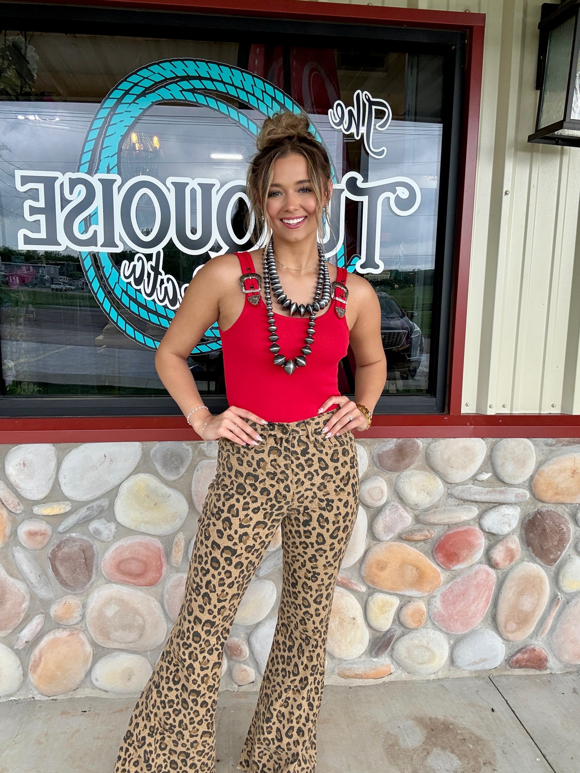 Turn heads in this bold and sassy red bodysuit! Featuring thick ribbed straps accented with western-style rhinestone buckles, this piece brings a perfect mix of cowgirl edge and sleek, flattering style. The stretchy, form-fitting fabric hugs your curves in all the right places, while the bodysuit design keeps your look smooth and tucked all day (or night). Pair it with your favorite high-rise denim or a leather mini for a show-stopping outfit.