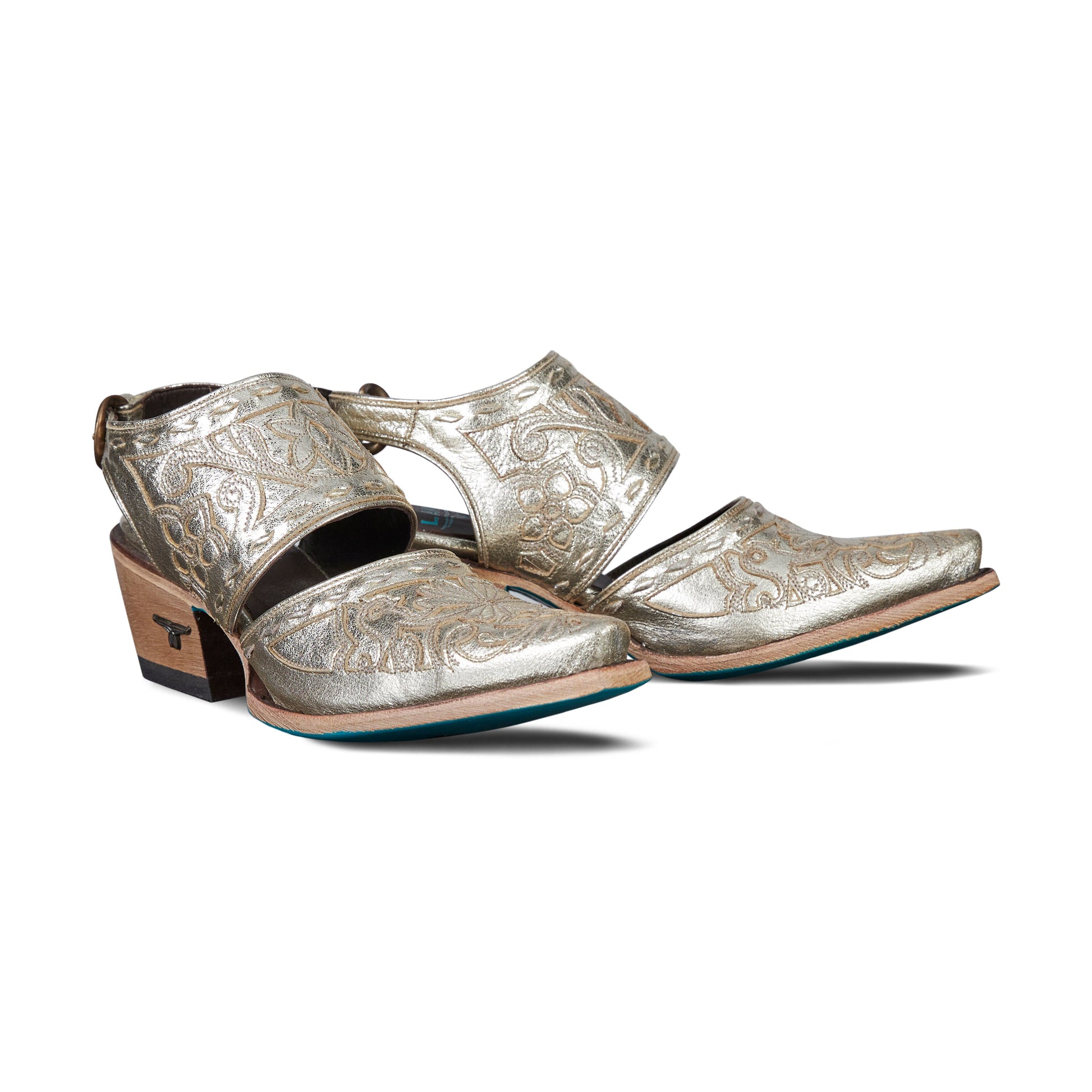 Our trendy take on a classic, the champagne metallic Robin Slingback Mule is everything nostalgic about the iconic, retro, underlay boot while keeping it anything but expected.
