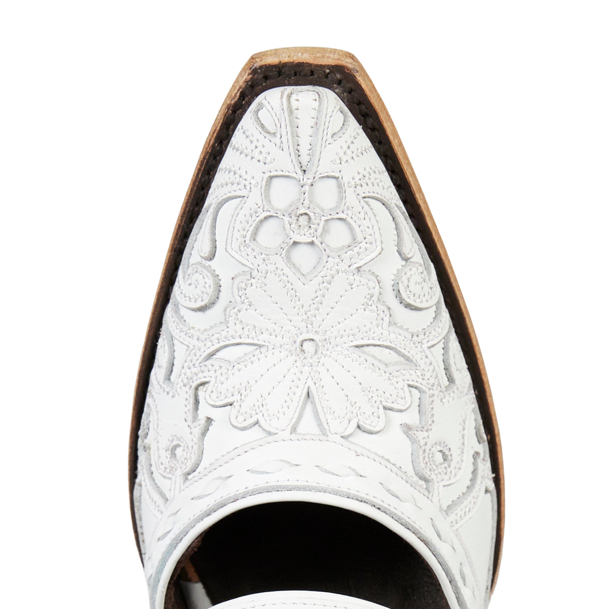 Our trendy take on a classic, the matte white Robin Slingback Mule is everything nostalgic about the iconic, retro, underlay boot while keeping it anything but expected.