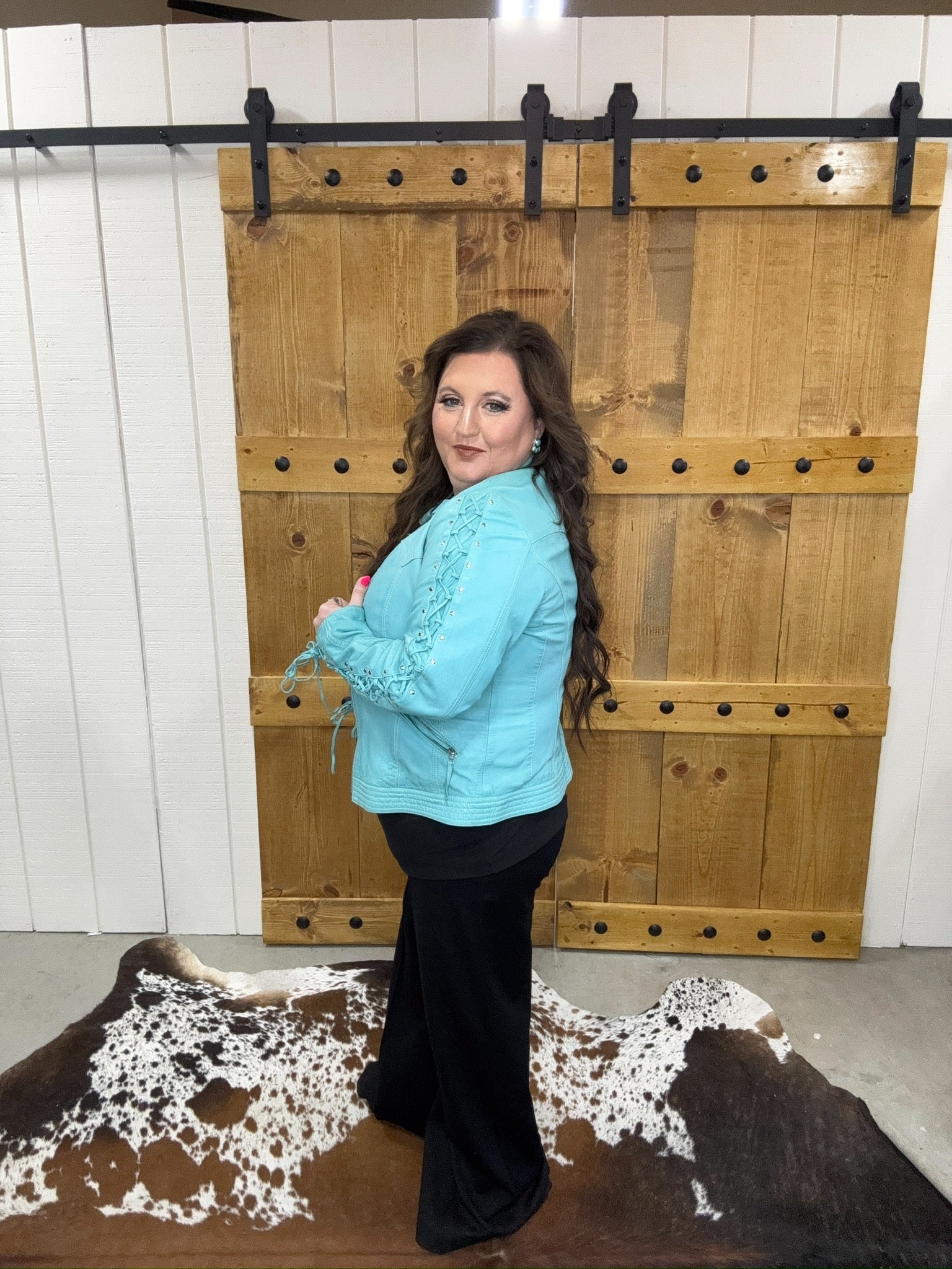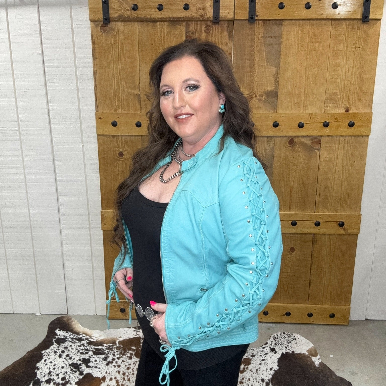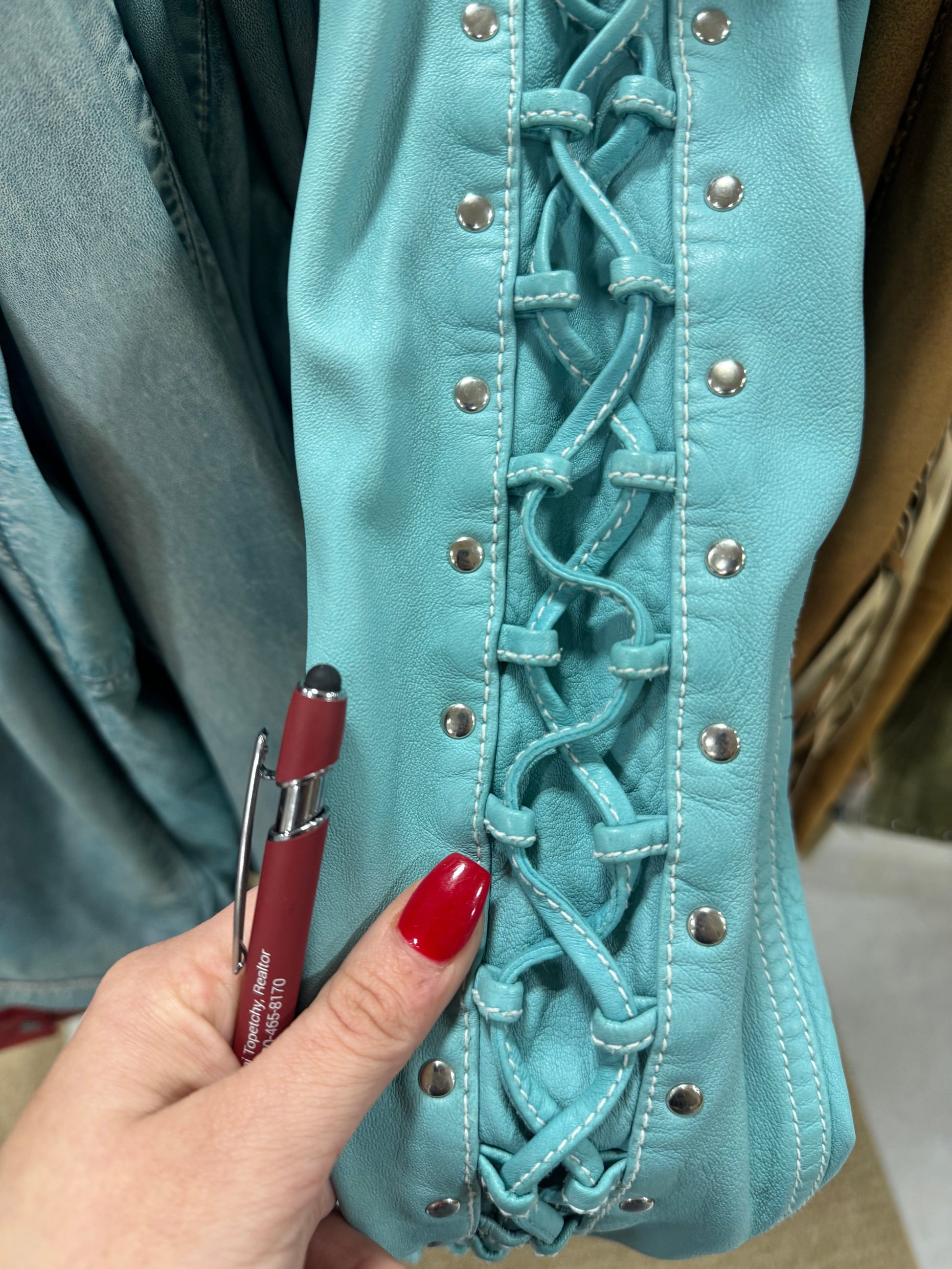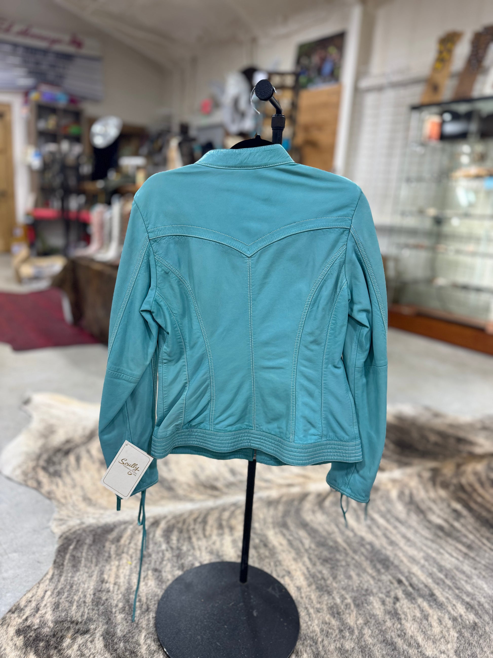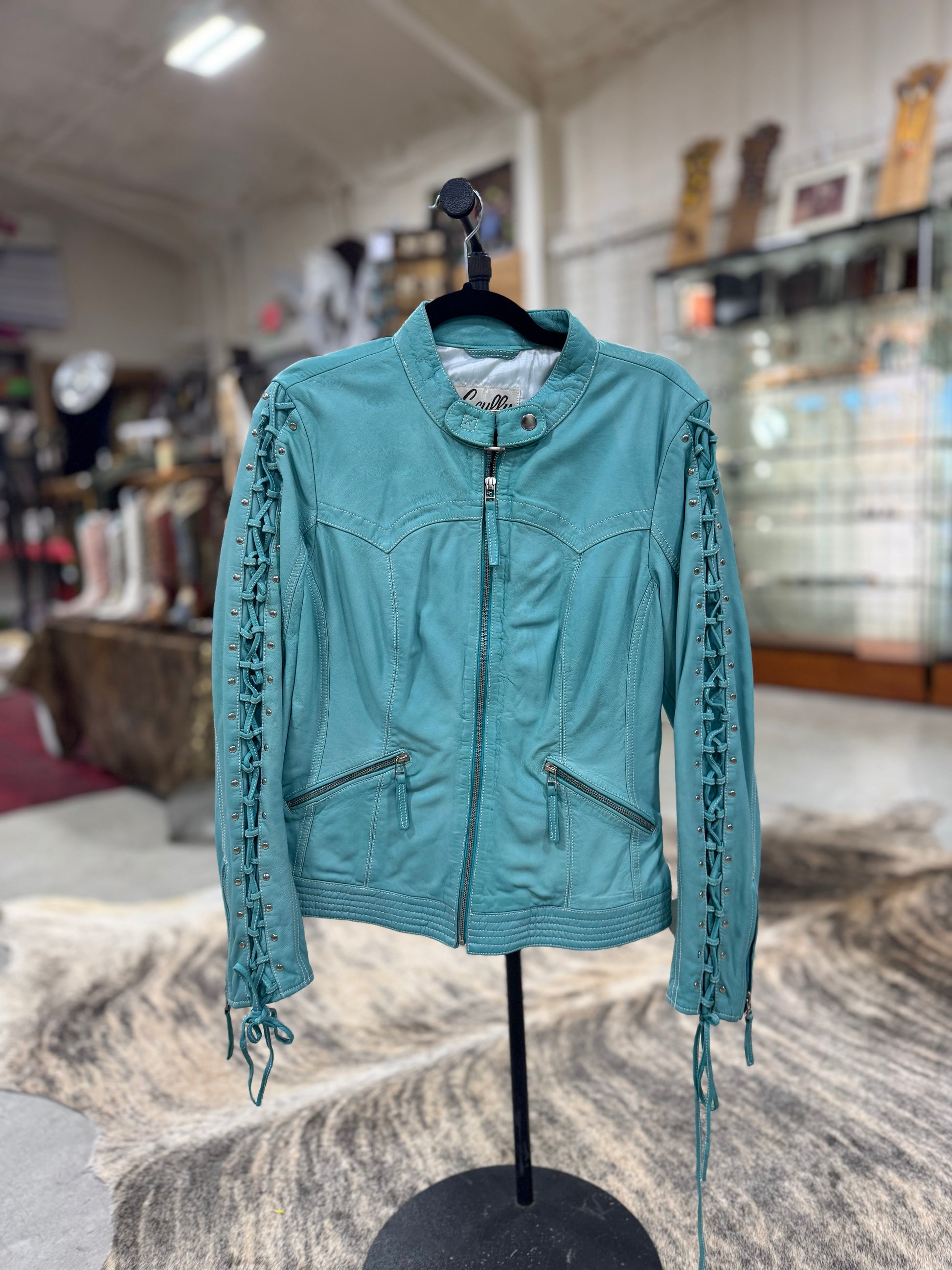 Scully Turquoise Lace Up Leather Jacket