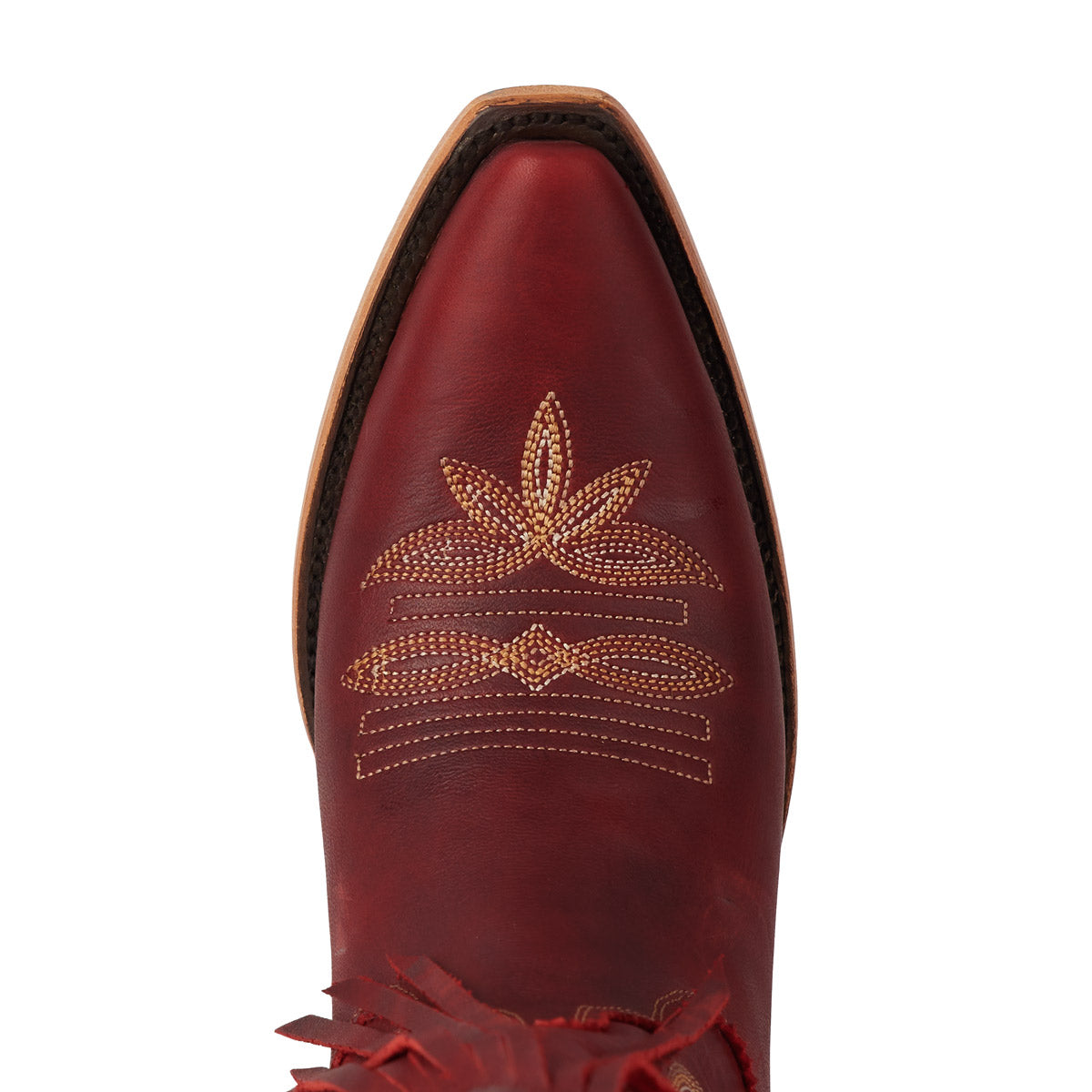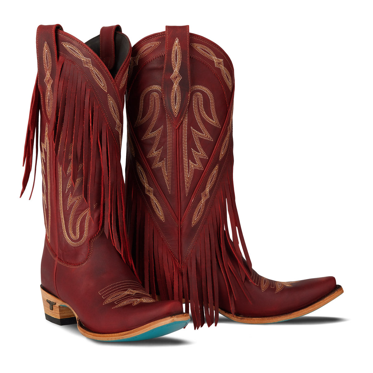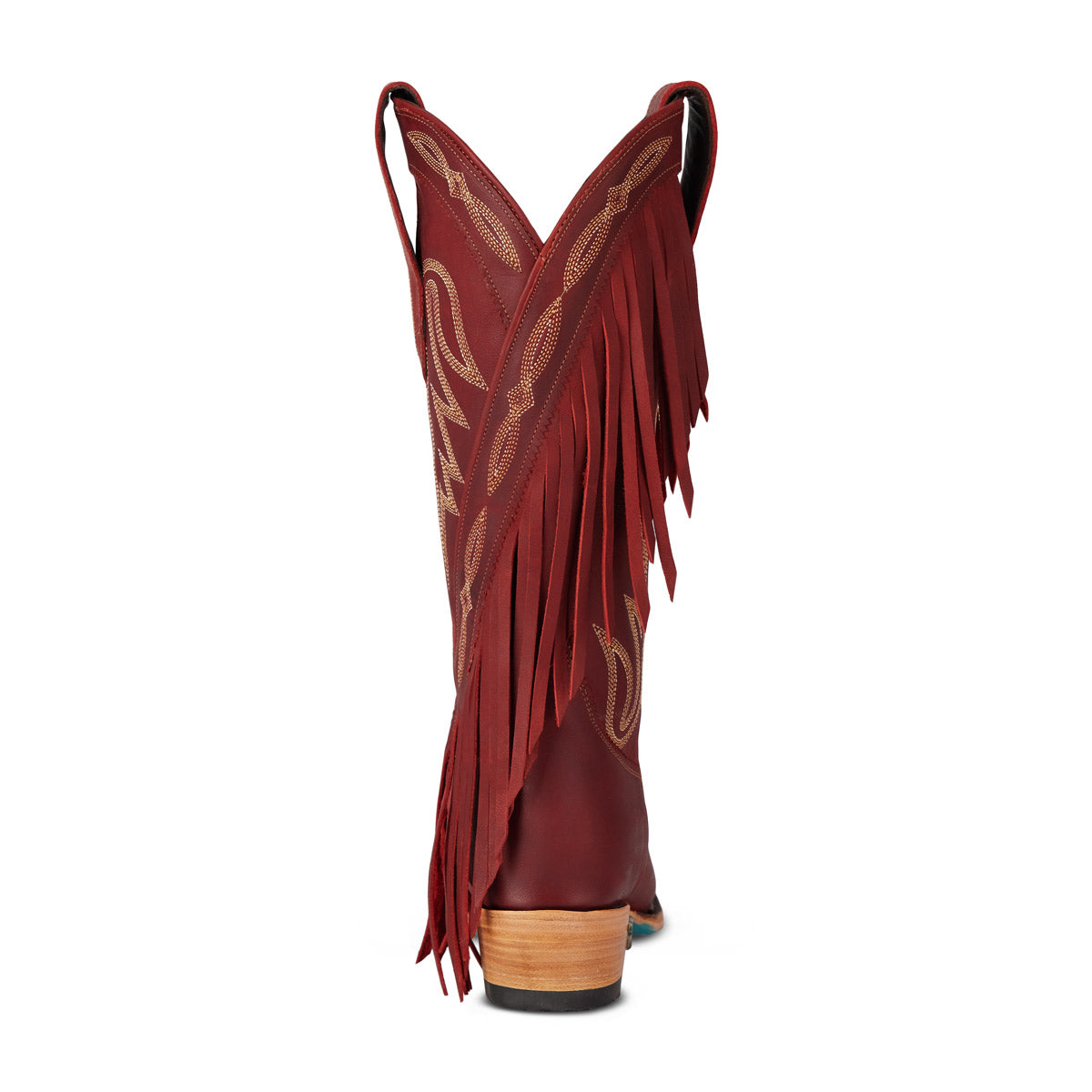 From rodeo to runway this chic boho western cowgirl boot is ready for wherever the night takes you. A modern play on traditional flame stitch & asymmetrical fringe detailing. She's a must have in your closet.
