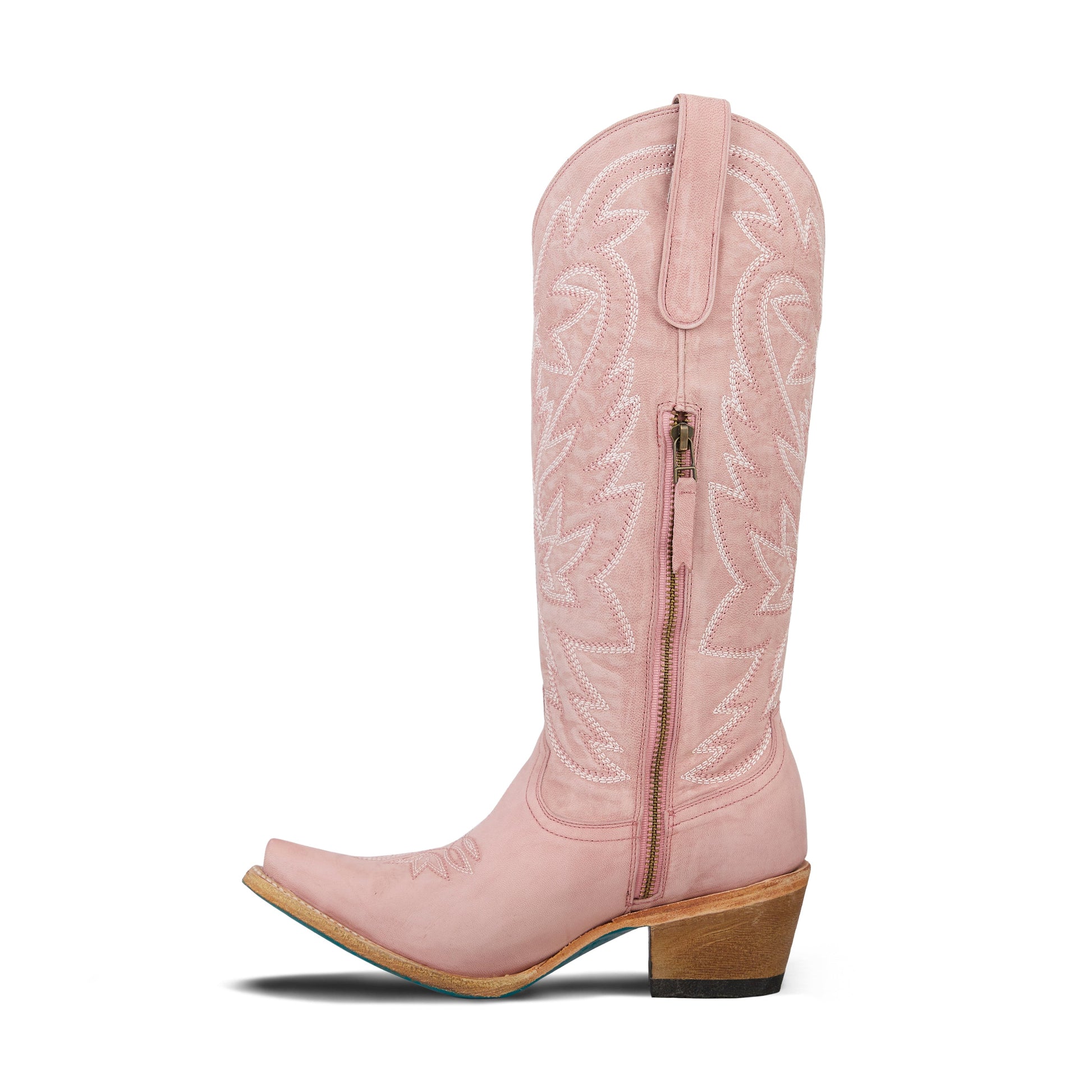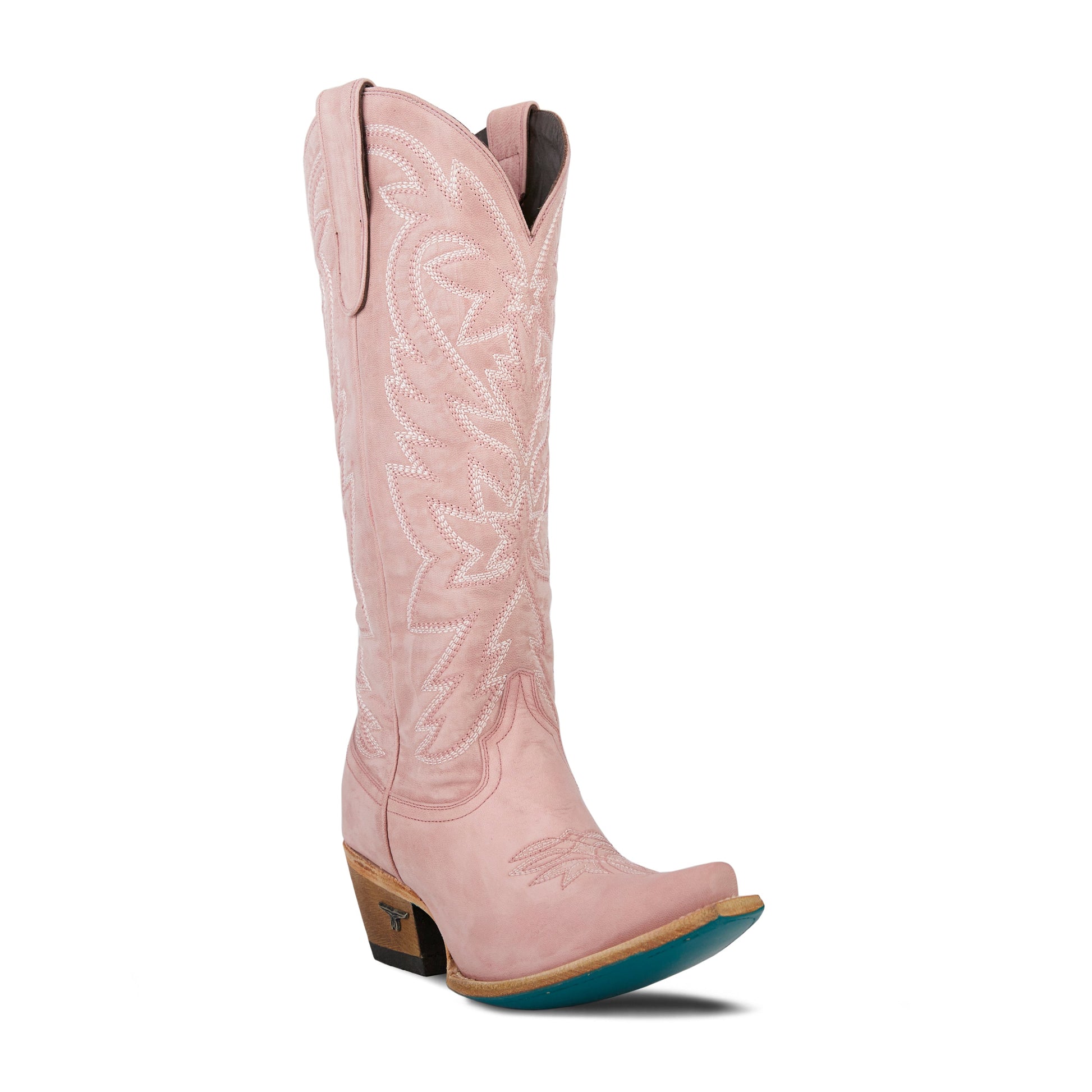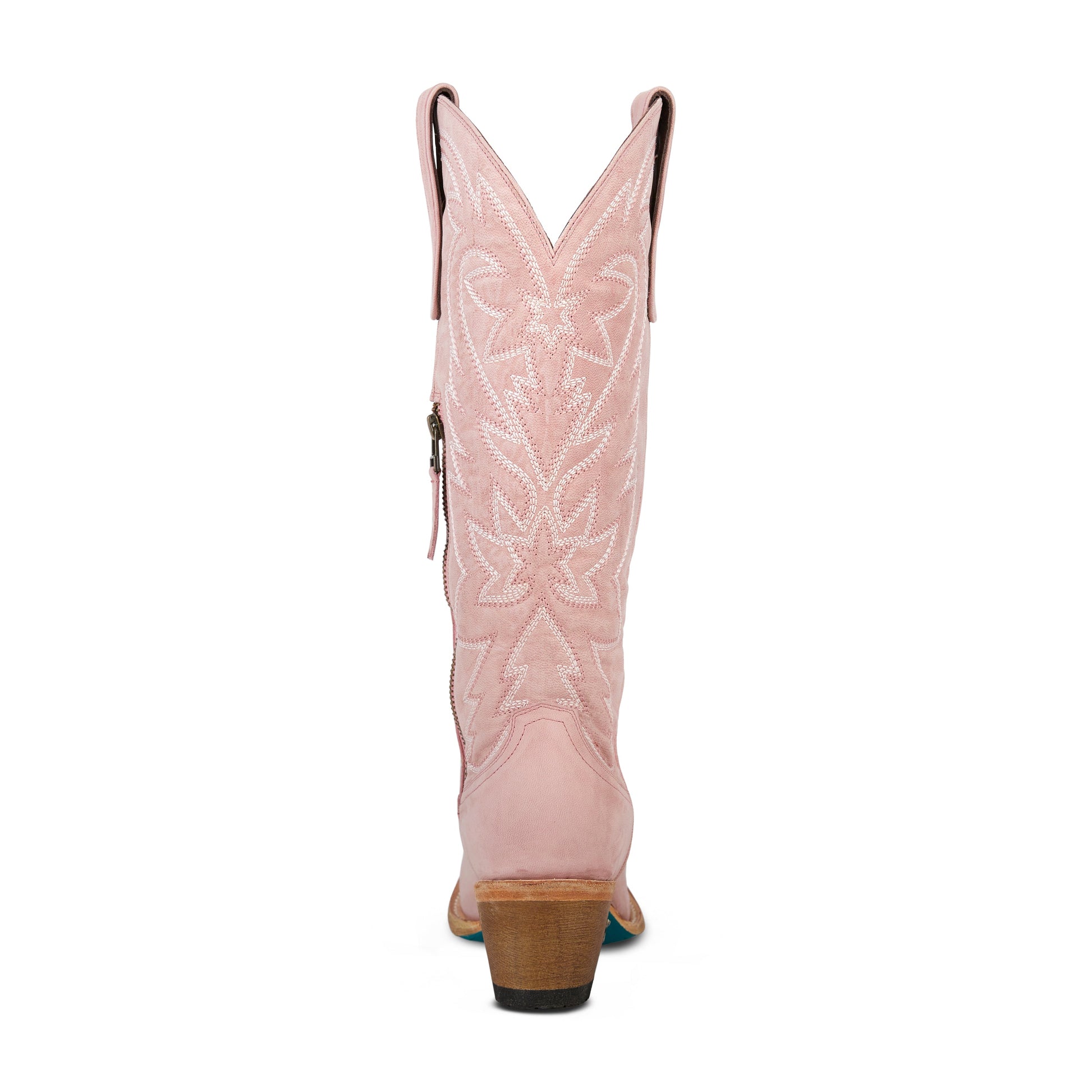 This classic snip toe is accompanied by an abstract cosmic starburst pattern and retro inspired toe stitch. Level up your wardrobe with this blue bottom hottie. She's the perfect chic, cowgirl boot right off the runway.