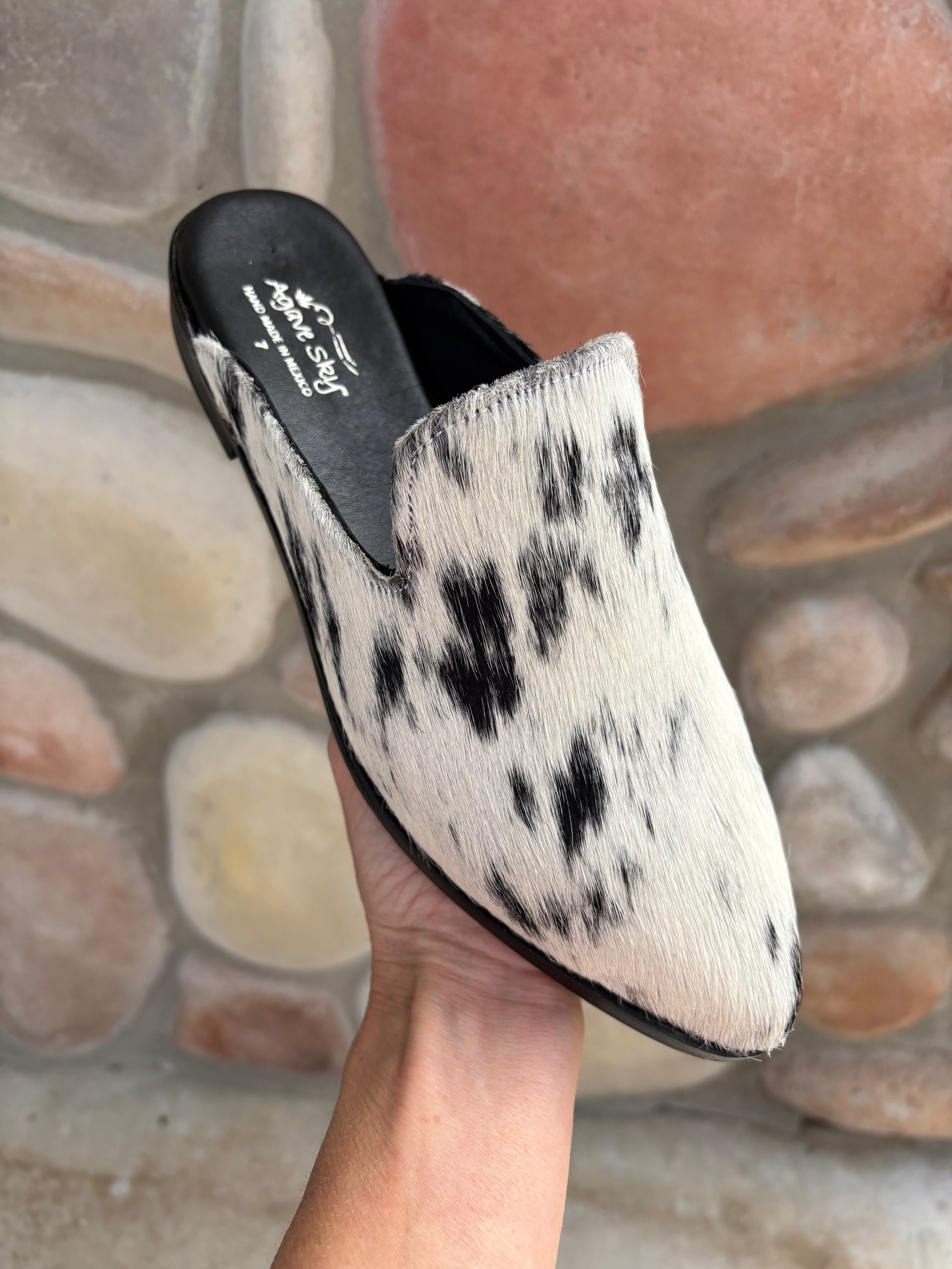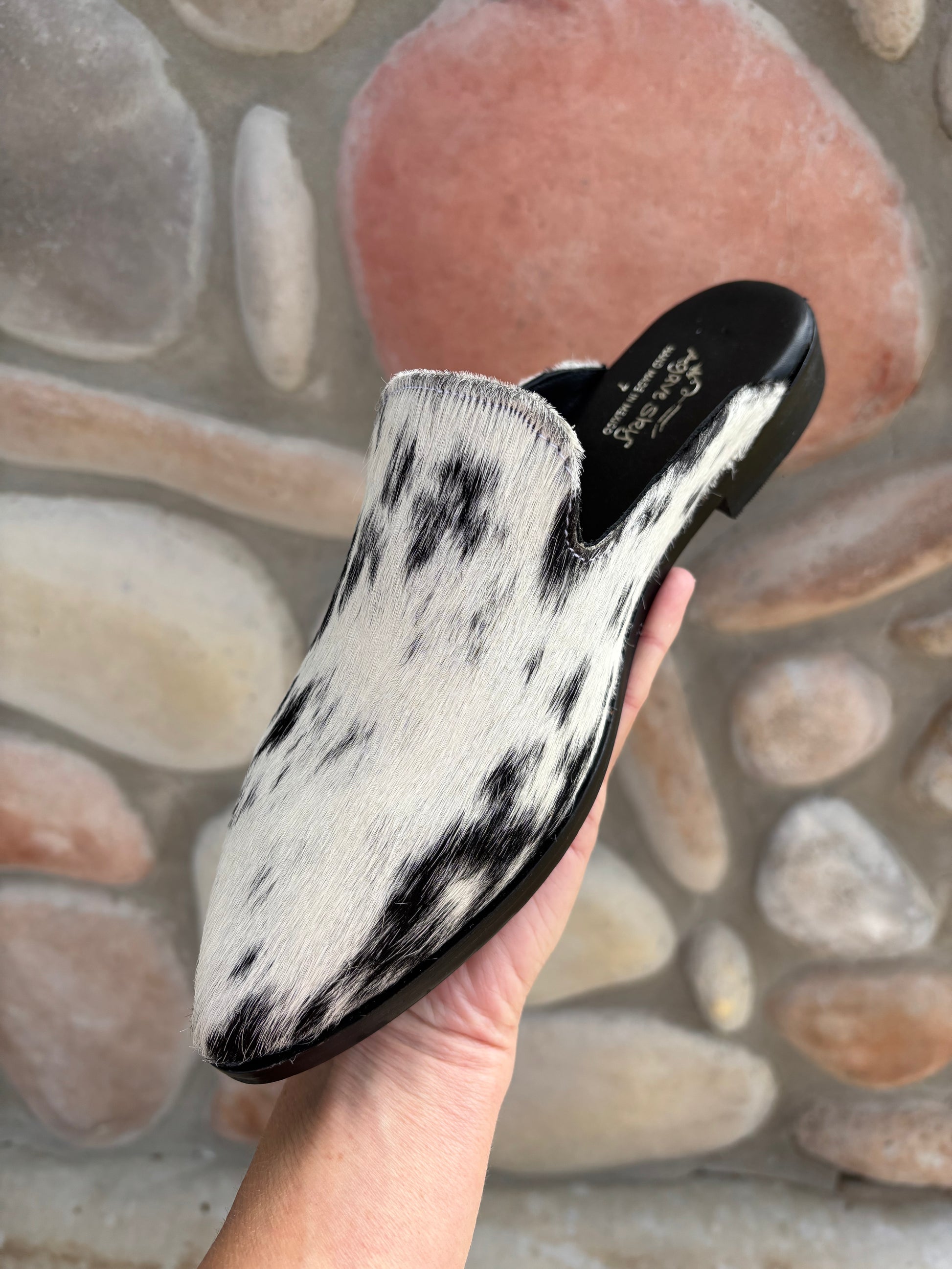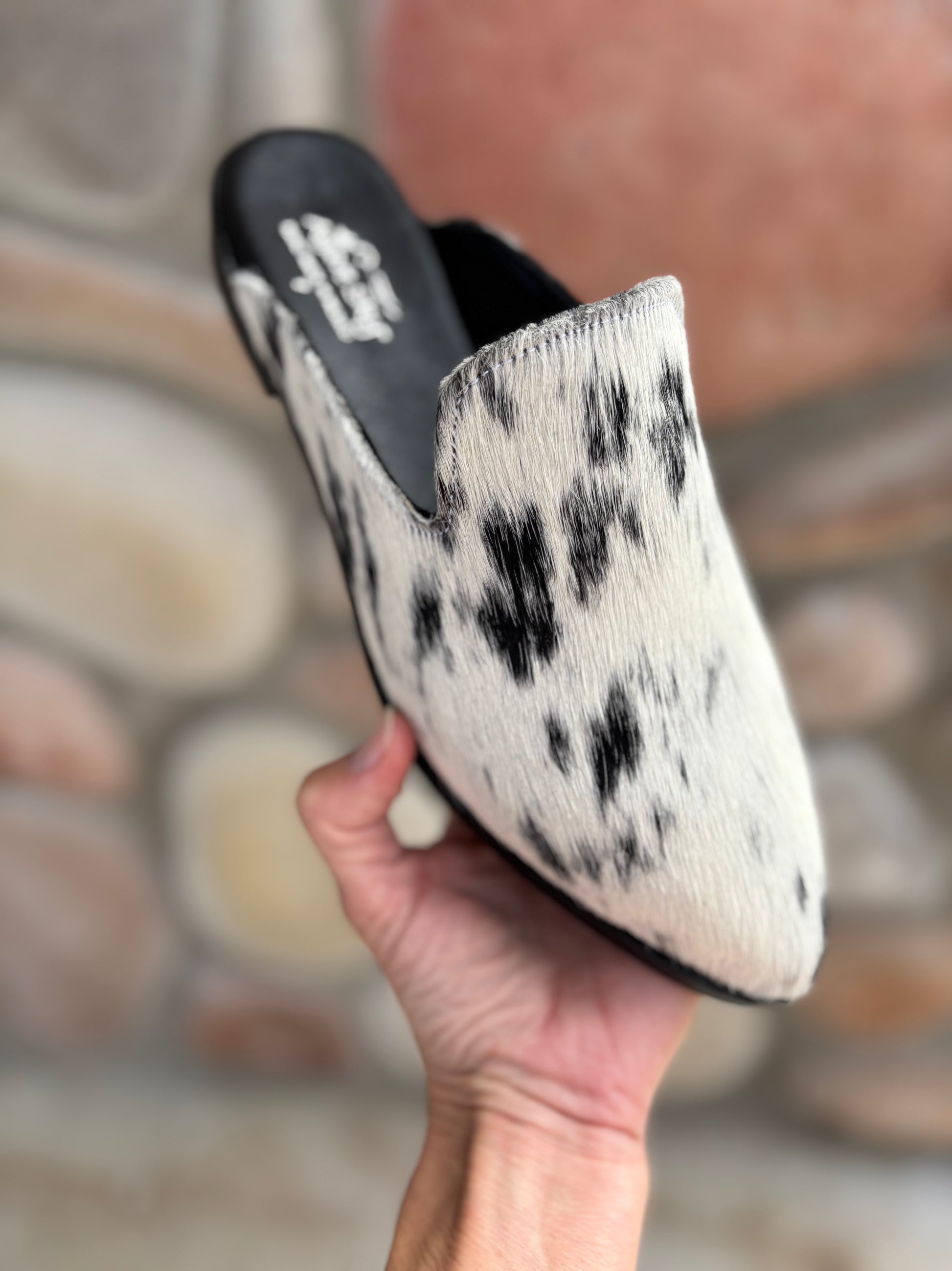 The Adaire- Handmade Cowhide Slip-On Mule Salt & Pepper Black/White