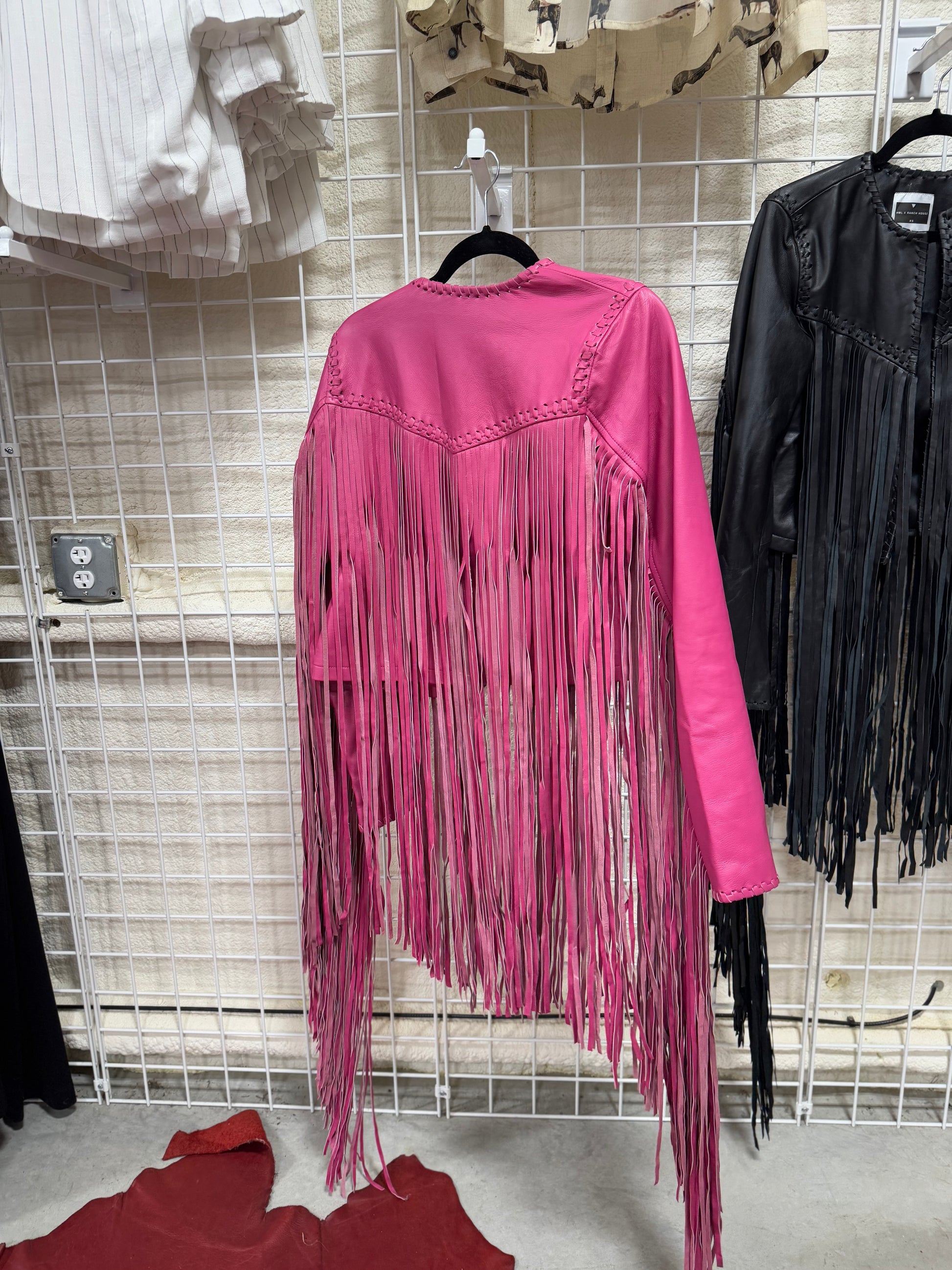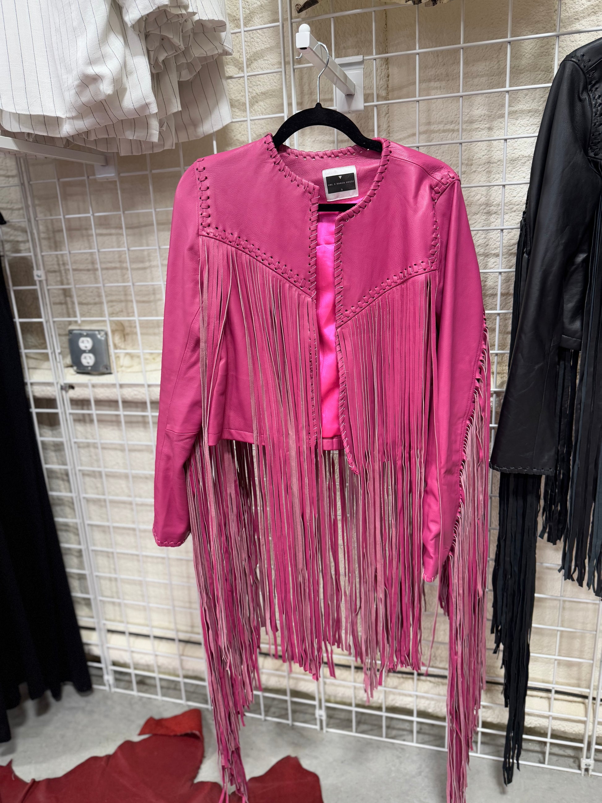 The Hannah Mae Pink Fringe Leather Jacket (Regular & Plus Size)