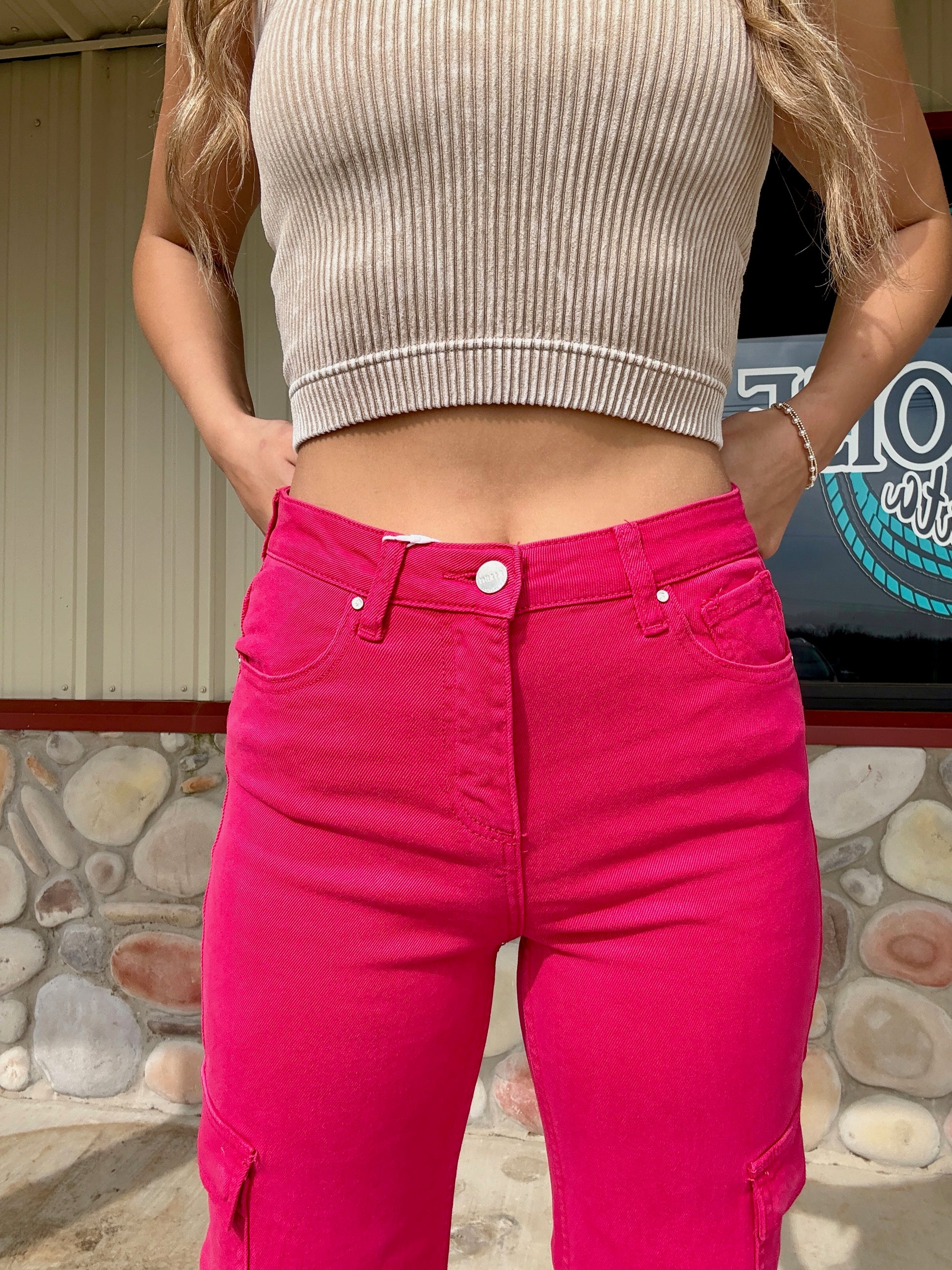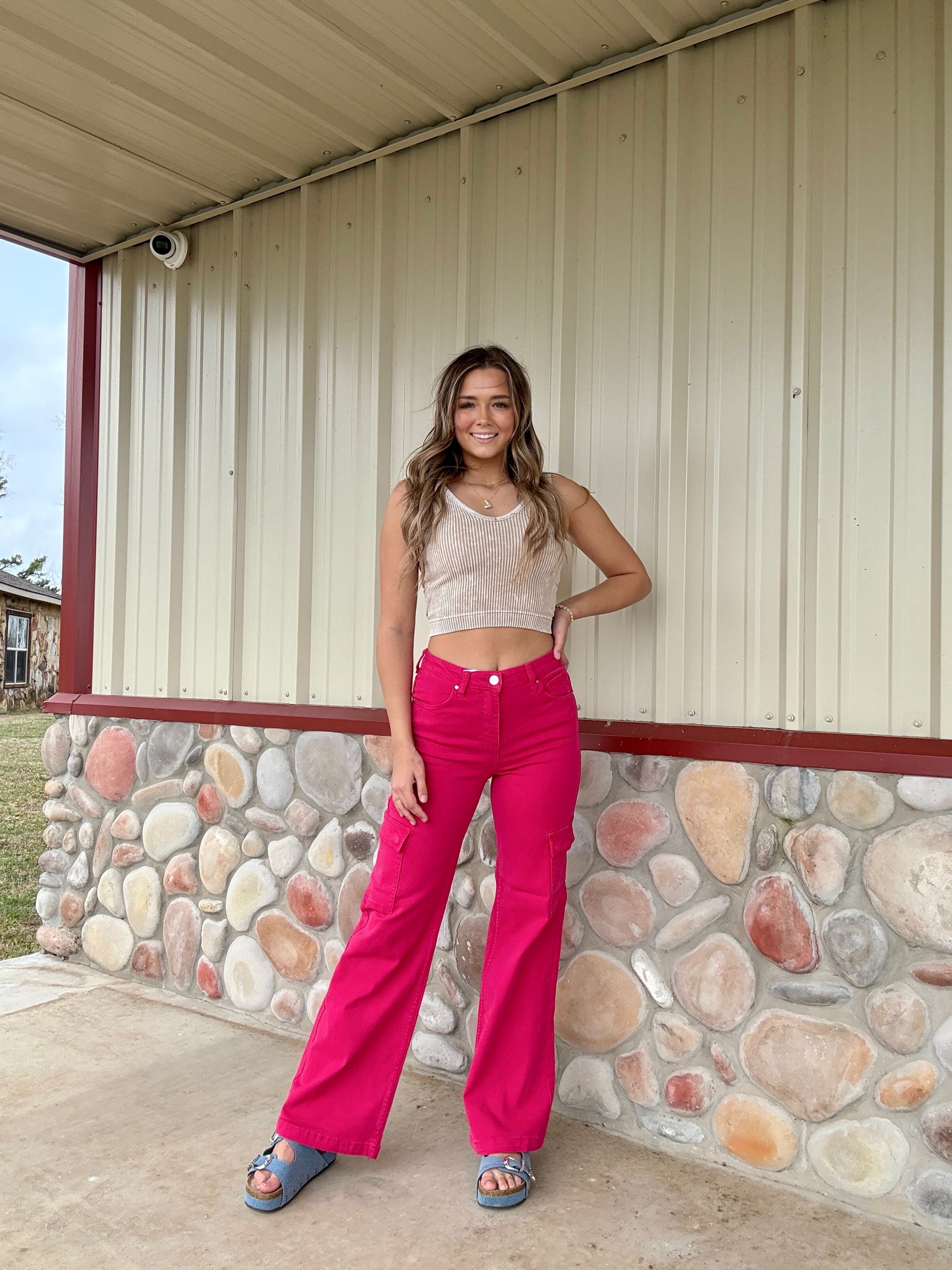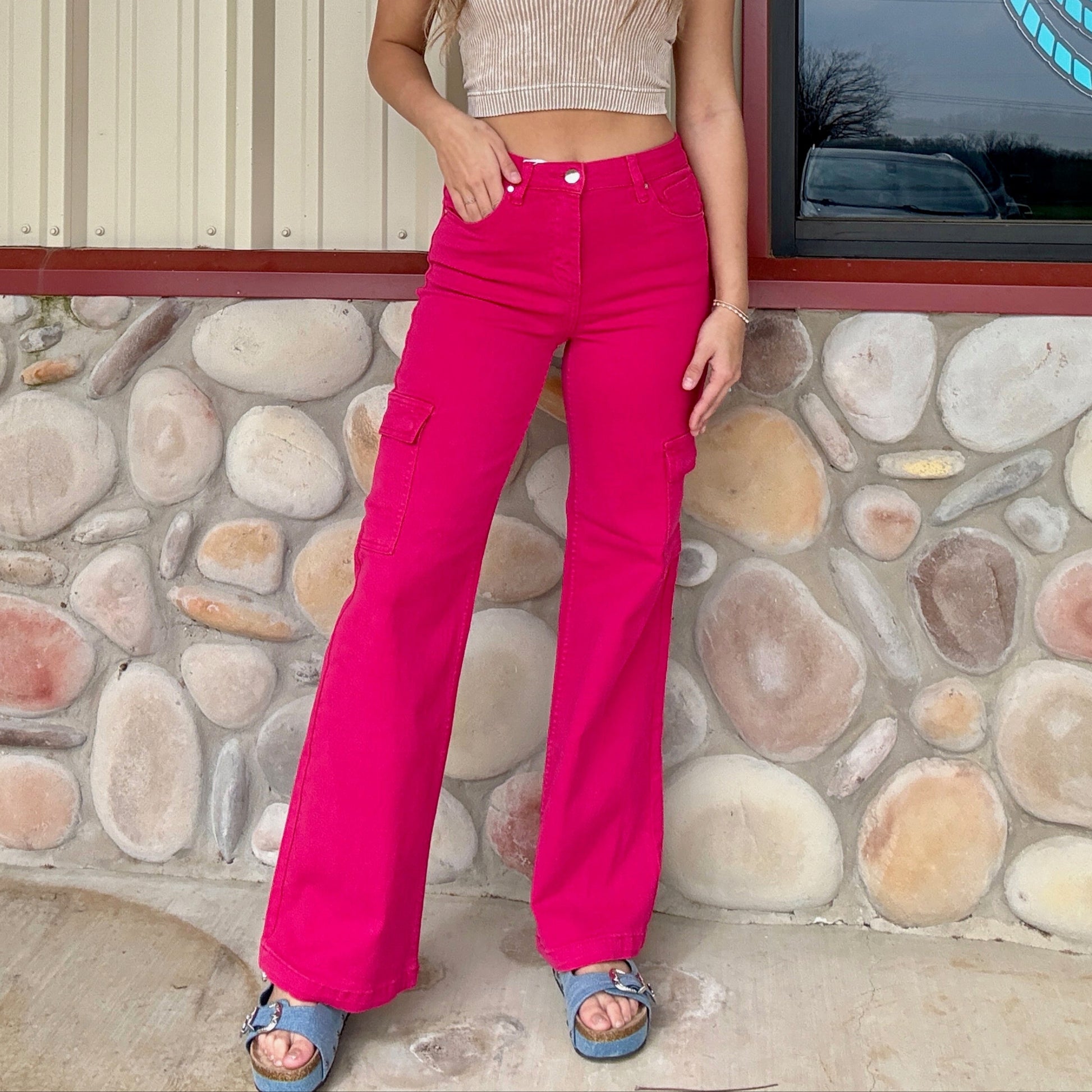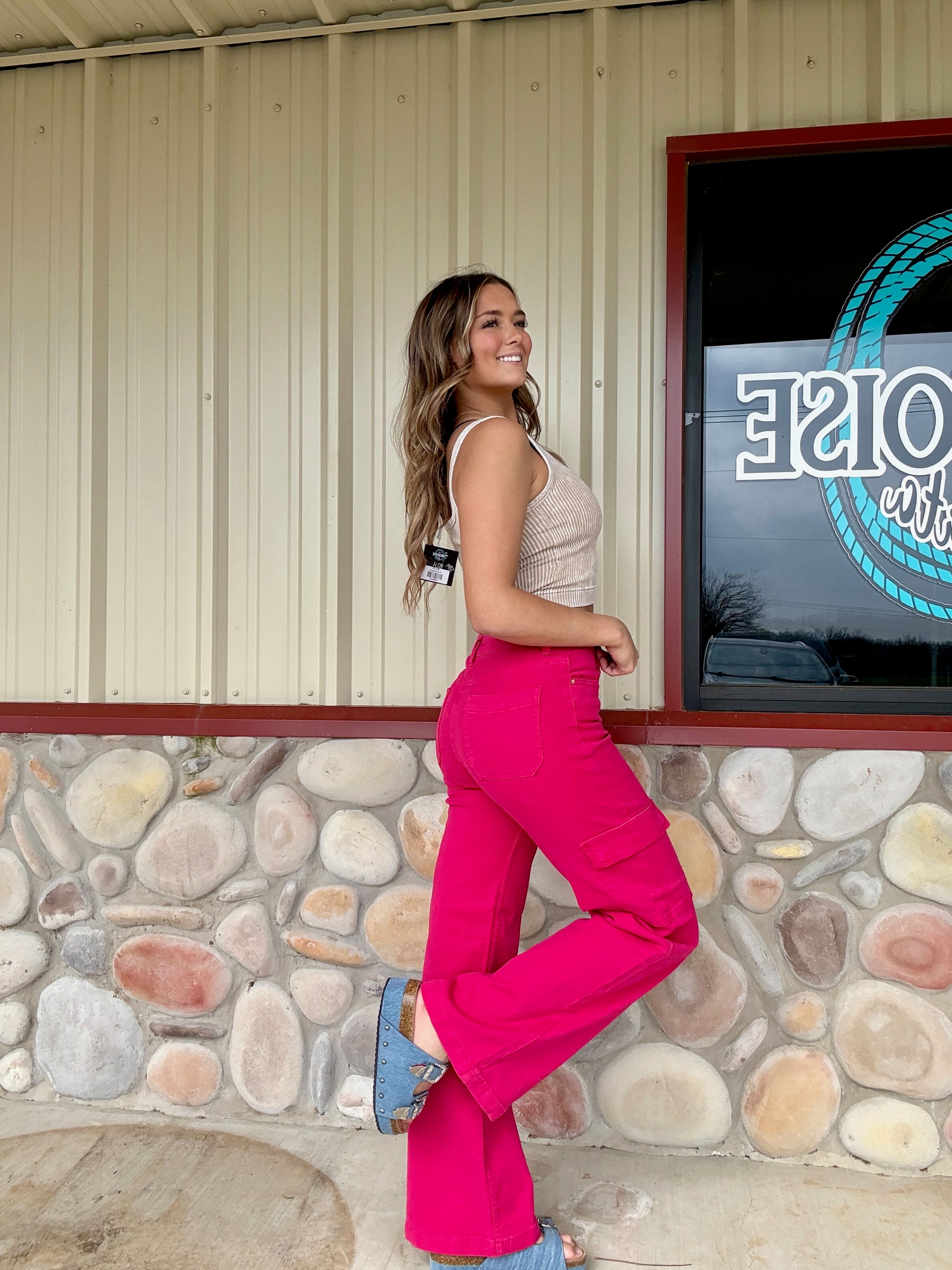 The Pink Pony – Fuchsia High Rise Wide Leg Cargo Pant