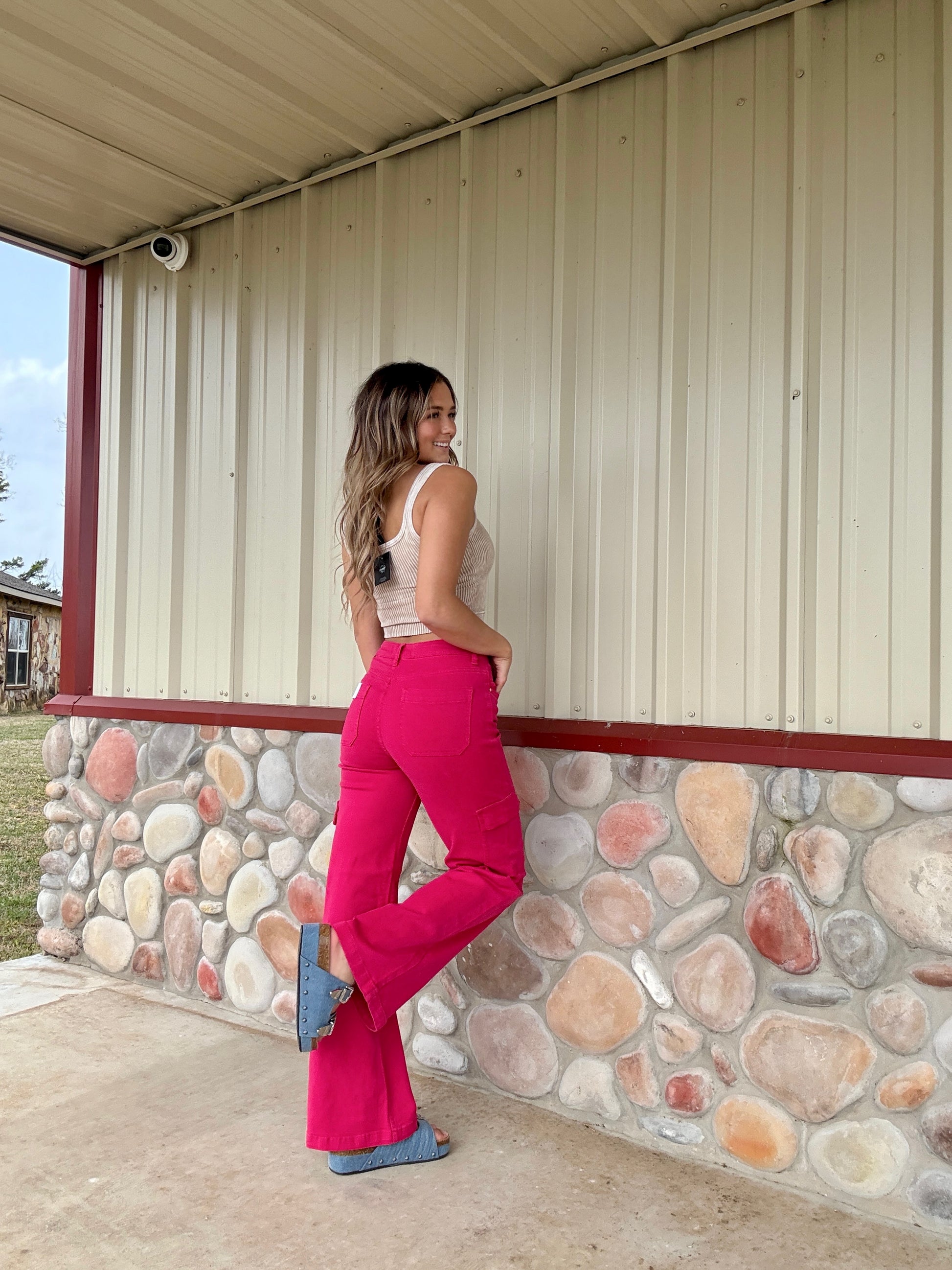 The Pink Pony Fuchsia High Rise Wide Leg Cargo Pant